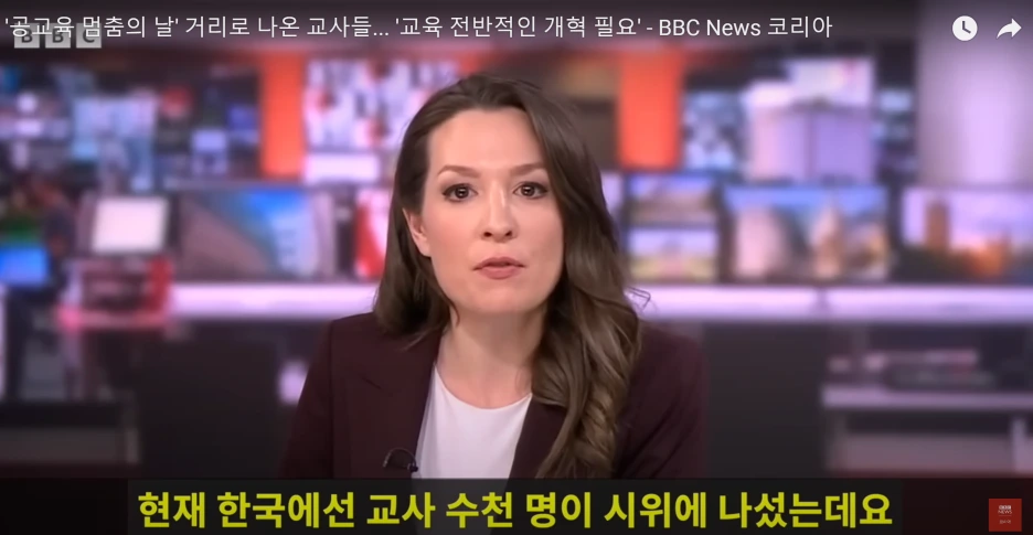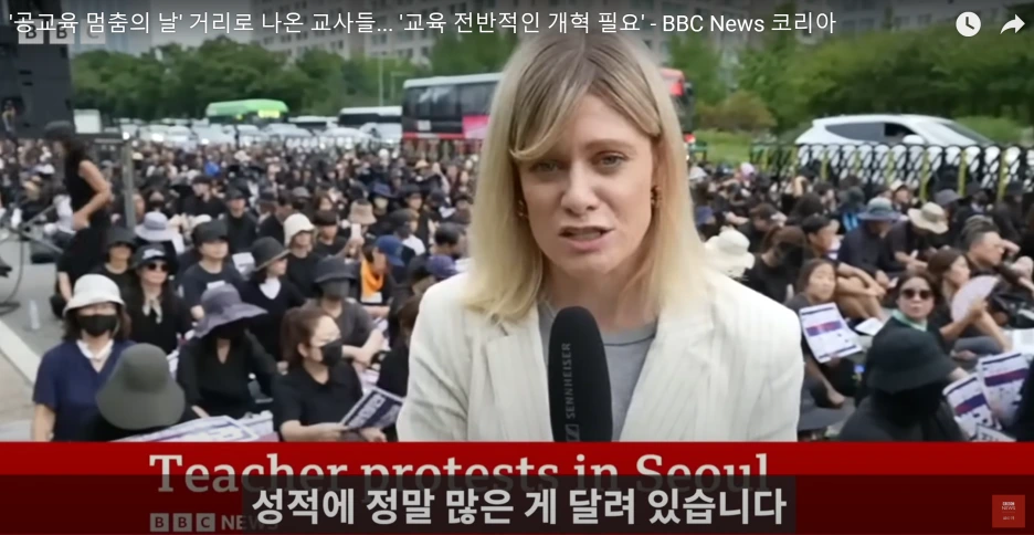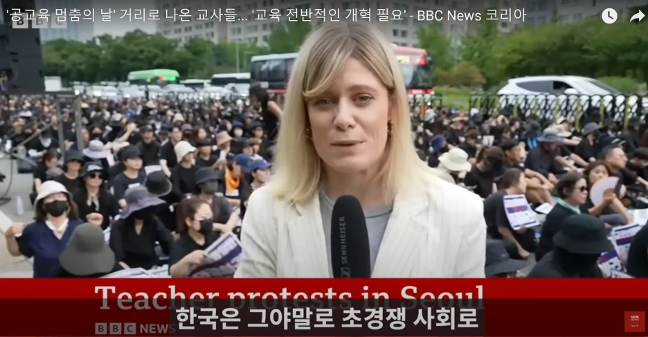 그러다가 못 참고 다시 뉴스를 보고 기사를 읽다가 울컥하기도 했다. 유튜브에서 BBC 뉴스가 보도하는 교사 집회 영상을 보다가 몸을 일으켜 앉았다. 모두가 알고 있지만 이야기하지 않는, 아니 포기하고 있는 한국 교육의 근본적인 원인이 영국 기자의 입에서 나왔다. 바로 '초경쟁 사회 (hyper competition society)'가 그것이다.