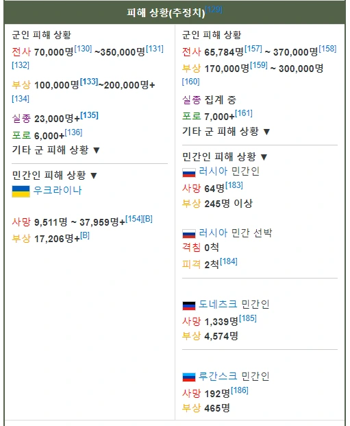 '이스라엘-하마스 전쟁'이 시작된 후 100일 만에 가자지구 내에서 민간인 2만 5천 명이 숨졌고, 그중 어린이 사망자는 1만 명이 넘는다고 한다. 700일을 넘긴 '우크라이나-러시아 전쟁'은 양국 모두 최소 7만 명의 군인이 전사했고, 민간인 사망자도 최소 1만 명이다.