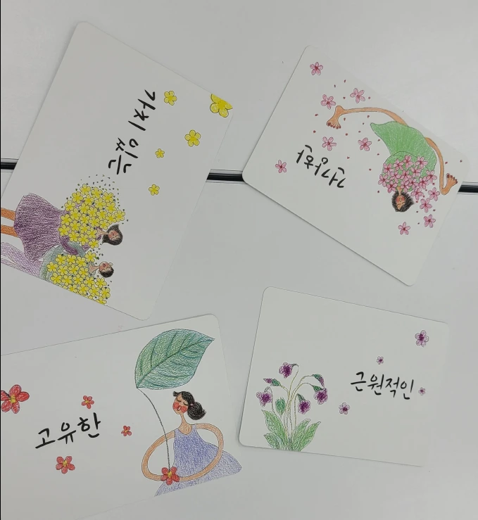 그렇다면 내가 고른 카드는 무엇일까? 퇴근 후 집으로 향하지 않고, 피곤한 몸과 마음을 이끌고 배움의 자리에 찾아오는 선생님들을 믿고 준비하는 '용기성장카드' 전체이다. 그래서 4월 모임을 마치니, 나의 용기가 거리에 서있는 이팝나무꽃들처럼 활짝 피어났다.