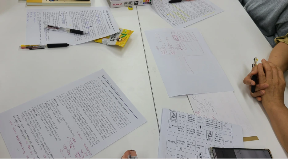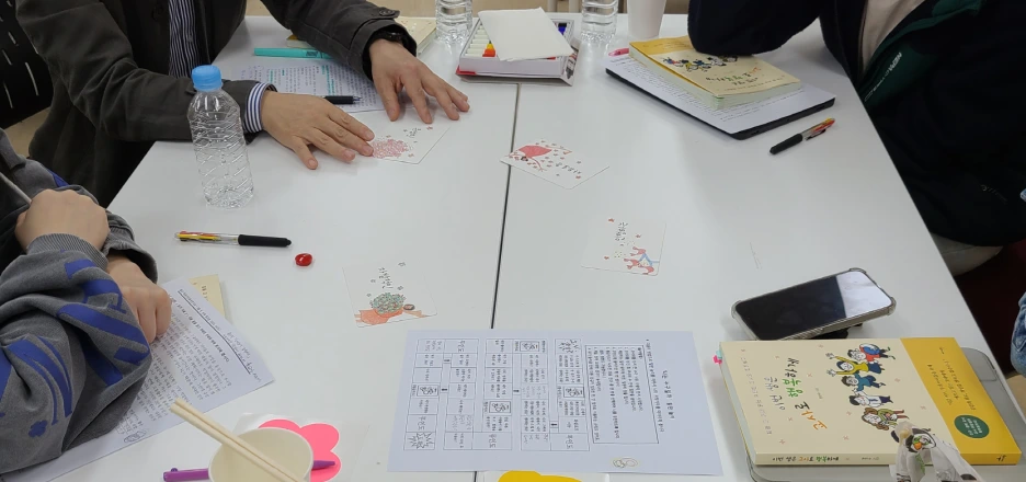 그리고 이런 말을 덧붙이며 모임을 마쳤다. "오늘 모임이 끝나면 수업 고민이 더 많아지실 것 같아요. 오늘 이 자리가 쉬운 해답을 찾는 시간이 아니라 짧게는 1년, 길게는 교직 생활 동안 안고 갈 질문을 얻는 시간이었다면 그걸로 충분합니다. 또 오늘은 1년 모임의 홉 단계인 주제를 만나는 시간이니까 앞으로 함께 걷고 점프하면 좋겠어요. 5월에는 수업자를 초대해서 수업임상연구회를 하고, 6월에는 다른 글을 읽고 더 깊이 있는 대화를 나누겠습니다. 배움의공동체는 최종 목적지도 되고, 거쳐가는 정류장도 됩니다. 오늘 우리가 함께 만든 모습처럼요."