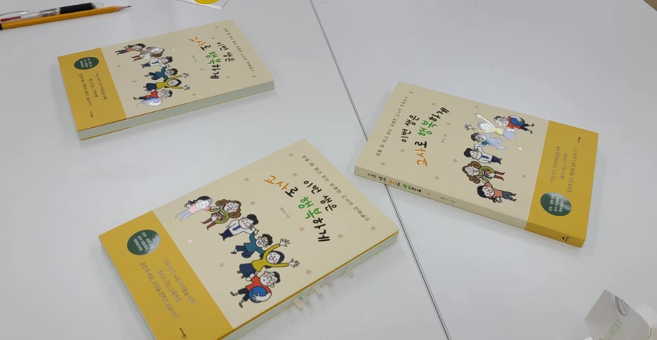 첫 시간에는 간단한 자기소개와 모둠별로 서로를 알아가는 주사위 게임을 20분 정도 했고, 이어서 미리 전해드린 <이번 생은 교사로 행복하게>로 책 대화 시간을 가졌다. 돌아가며 가장 인상적이었던 부분을 낭독하고 이유를 공유하면서 자연스럽게 학교생활의 즐거움과 어려움을 나눌 수 있었다. 저자와의 만남 시간은 아니었지만, 올해 고3 교실에서 도전하고 있는 참여와 소통이 있는 수업 사례에 관해서도 말씀드릴 수 있었다. (모임 분위기는 선생님들의 표정만큼 진지하고 다채로운 '책상 샷'으로 대신 전한다.^^)