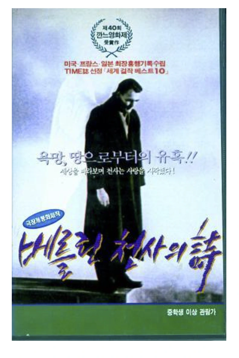 20대 시절 아마도 비디오 대여점에서 난해한 제목 때문에 지나쳤을 영화인데, 나이를 먹고 나니 <베를린 천사의 시>란 한국어 제목이 참 마음에 들었다. 독일어 원제는 '베를린 위의 천국'이라는데, 미국에서는 '욕망의 날개'로 참 저렴하게 바뀌어 개봉되었다고 한다. (국내에도 '욕망의 날개'로 제목을 달았다면, 아마 20대의 나는 비디오테이프를 집어들었을 수도...)