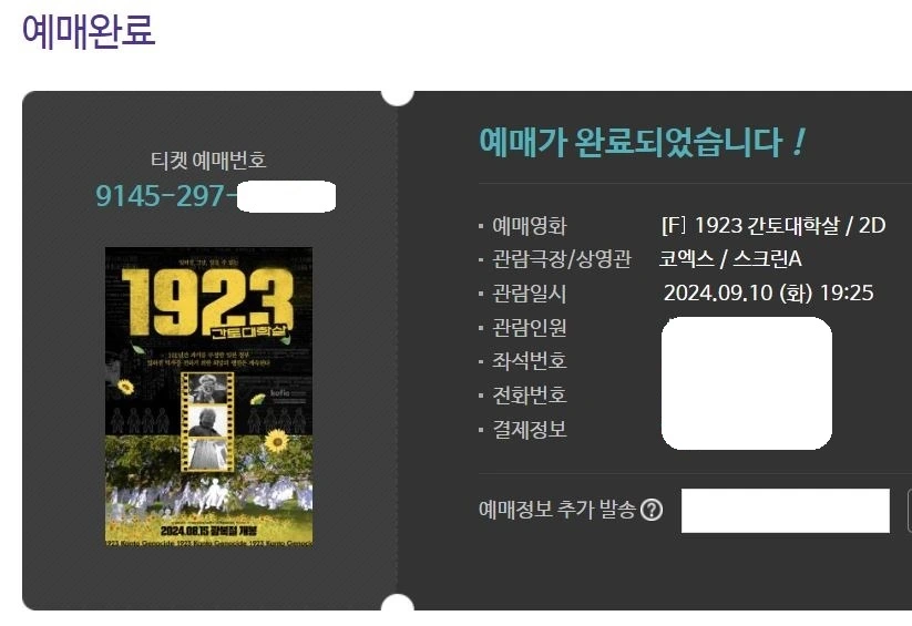 이때 누군가가 개봉관이 몇 개 없어서 직접 가지 못한다면, 극장표라도 예매해서 어렵게 제작하신 분들에게 도움을 주면 좋겠다고 말했었다. 오늘 무심코 카톡을 열어보다가 떡볶이를 먹고 있는 유관순 열사의 얼굴을 보니, <1923 간토 대지진>이 다시 생각났다. 항일 운동을 하신 분들이 하늘에서 크게 분노하며 피를 토할 만한 굴욕적인 일들이 일본과의 관계에서 많이 일어나고 있는 지금, 정말 작은 실천이라도 하고 싶은 마음에 관람권을 예매했다. 아직 상영 중이라 다행이었다.