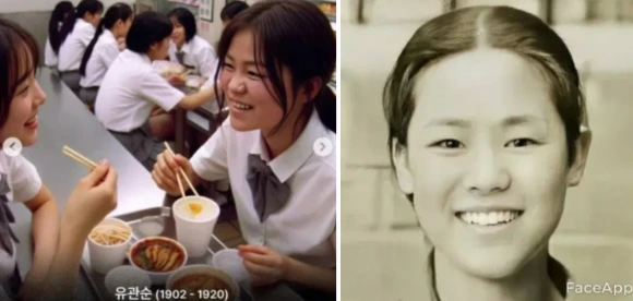 그러다가 최근에 AI로 만든 유관순 열사의 사진을 보게 되었다. 고2 정도의 나이로 즐겁게 학교생활을 하는 모습과 미소가 너무너무 보기 좋아서, 카톡 프사 사진에 넣어서 답답한 시국에 대한 소심한 '항거'를 하고 있는 중이다.