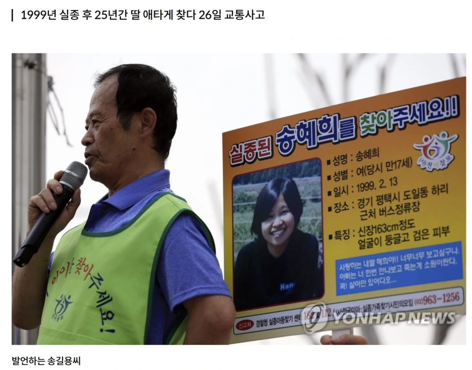 25년간 실종된 딸을 찾아 전국을 떠돌던 송길용 씨가 얼마 전 교통사고로 세상을 떠났다. 거리에서 17살 딸아이가 웃고 있는 현수막을 볼 때마다 '남의 이야기만은 아니야'라는 생각에 마음이 아팠는데, 어머니도 이미 세상을 떠났기 때문에 혜희를 기억해 줄 사람이 얼마 남지 않은 것 같아 마음 안쪽의 뼈마디가 시렸다.
