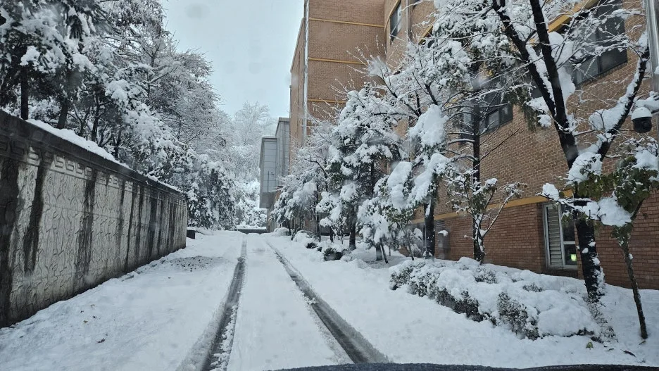 어제 내가 전교 1등으로 출근한 덕에 폭설을 피했다고 자랑했었지. 오늘도 늘 나오는 시간에 출근해서 아슬아슬 눈덩이를 피해 살금살금 운전했다. 학교에 거의 다 와서 문자랑 카톡을 봤는데, 12시까지 등교하라네. ㅜ.ㅜ 기왕 온 거, '교무실에서 우아하게 음악 틀어 놓고 커피 마시며 혼자 놀자'라는 생각에 학교 안에 들어갔는데 차가 눈에 빠져 올라가질 않는 거야. 당황하지 않고~ 눈삽을 가져와서 차 주변의 눈을 치웠어.
