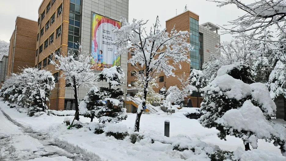 지금 오는 아이들은 힘들겠다고 생각하면서도 본능적으로 풍경 사진 몇 장을 찍었어. 10년째 근무하는 학교라 떠날 날이 얼마 남지 않아서 때론 눈 오는 아침 풍경도 간직하고 싶네. 모두 오늘 출근하느라 고생 많았고 짜증 나는 길이었겠지만 나를 받아주는 곳이 있어서, 누군가를 걱정할 수 있어서 그래도 다행이라고 생각하면 좋겠어. (실시간으로 변하는 운동장 사진 투척해~)