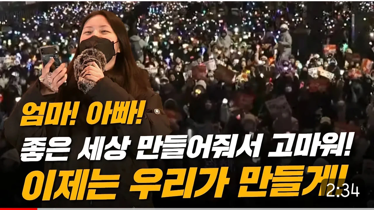 "저는 1989년생이라서 민주화운동을 직접 겪은 세대가 아닌데, 이번에 이런 일을 겪으면서 정말 빚을 많이 졌다는 생각을 했습니다. 내가 태어나서 당연하게 누려왔던 자유가 당연한 것이 아니었구나 하는 생각을 정말 많이 했습니다. 그리고 그 아픈 경험을 가지고 계신 어른들께서 과거의 경험에도 불구하고 다시 거리로 나와주셔서 함께해 주시는 것에 대해서 정말 감사드립니다."