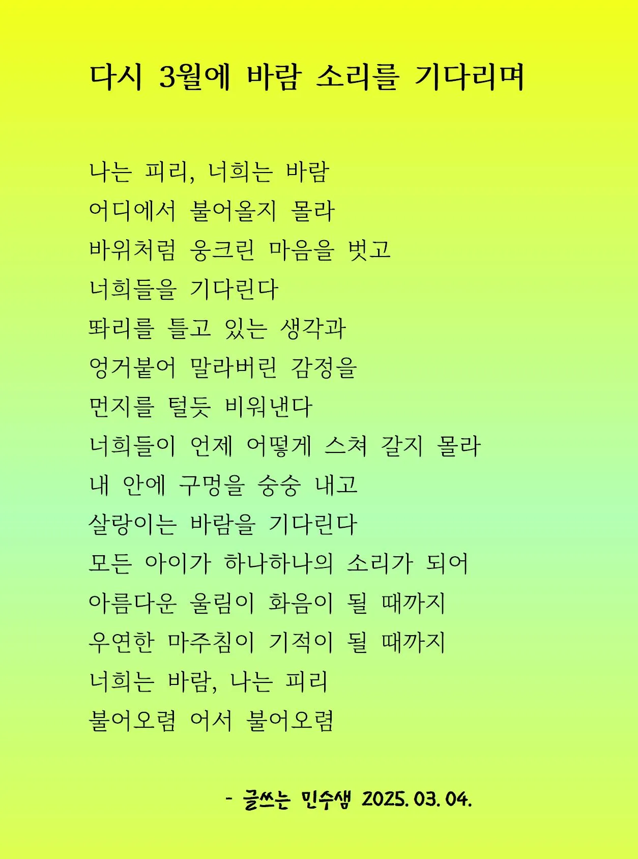 2025년 3월 4일, 봄바람처럼 살랑살랑 불어오는 아이들을