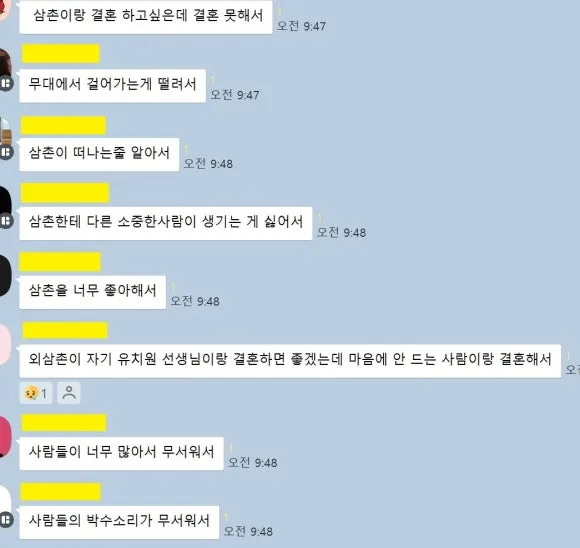 나는 문학 시간이라 시의 화자, 상황, 정서, 태도를 파악하는 활동의 몸풀기로 '눈물의 화동' 영상을 보여줬다. 먼저 간단하게 현대시 감상의 원리를 설명하고 영상을 본 후, 수업용 오픈 채팅방에 4살짜리 화동이 오열한 이유를 생각해서 올리게 했다.
