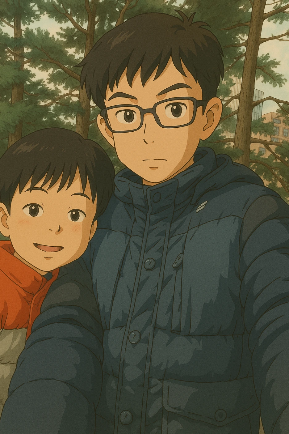 아래는 첫째 아들의 100일 무렵 사진과 10년 전쯤에 찍은 첫째, 둘째 아들의 사진을 지브리 스튜디오 스타일로 변환한 것이다. 현재로선 두 녀석 모두 우리 부부에게 '은명이' 같은 자식이 될 것 같아서, 음... 행복하다. 한 녀석이라도 금명이처럼 너울너울 멀리 날아가면 기쁘겠지만 서운한 마음도 클 것 같다.