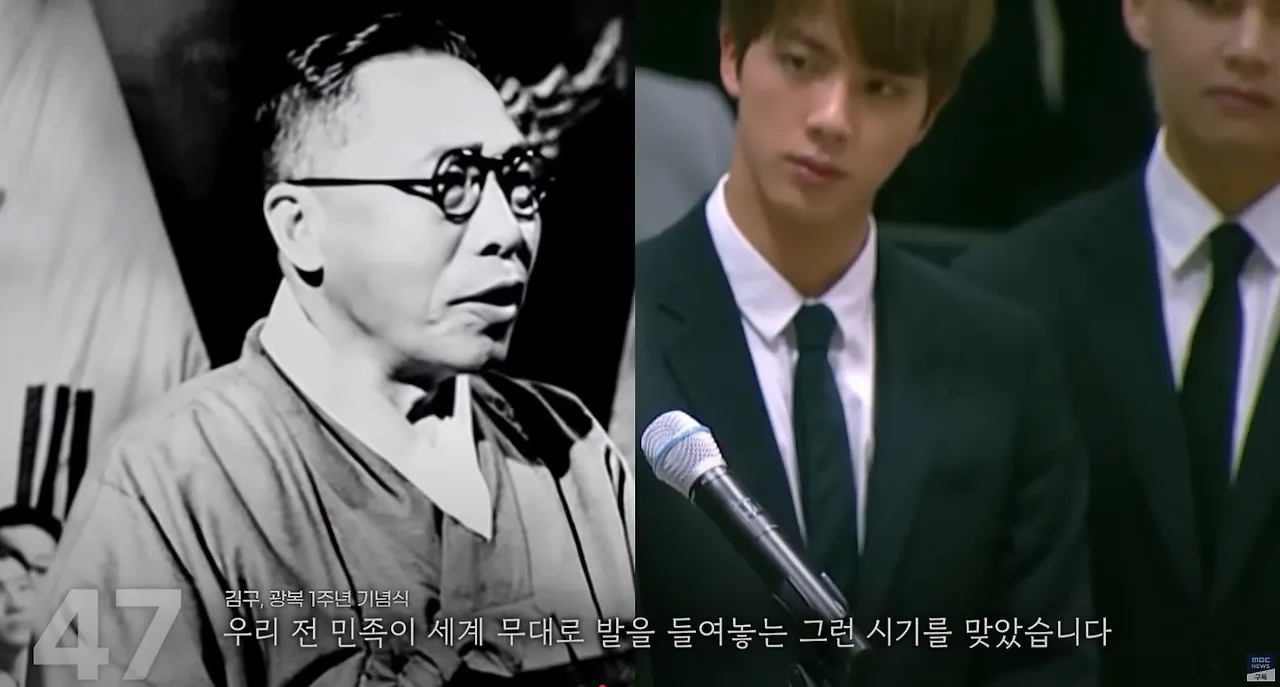 김구 선생님이 UN에서 연설하는 BTS의 영광으로,