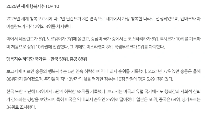 2025년, 한국의 행복지수가 5계단 떨어져서 58위를 기록했다. '타인에 대한 관심과 나눔'이 행복에 큰 영향을 미친다는데, 나도 낯선 사람과의 만남이 갈수록 부담스럽고 나와 맞지 않는 사람과 함께 하는 시간이 너무 피곤하다.