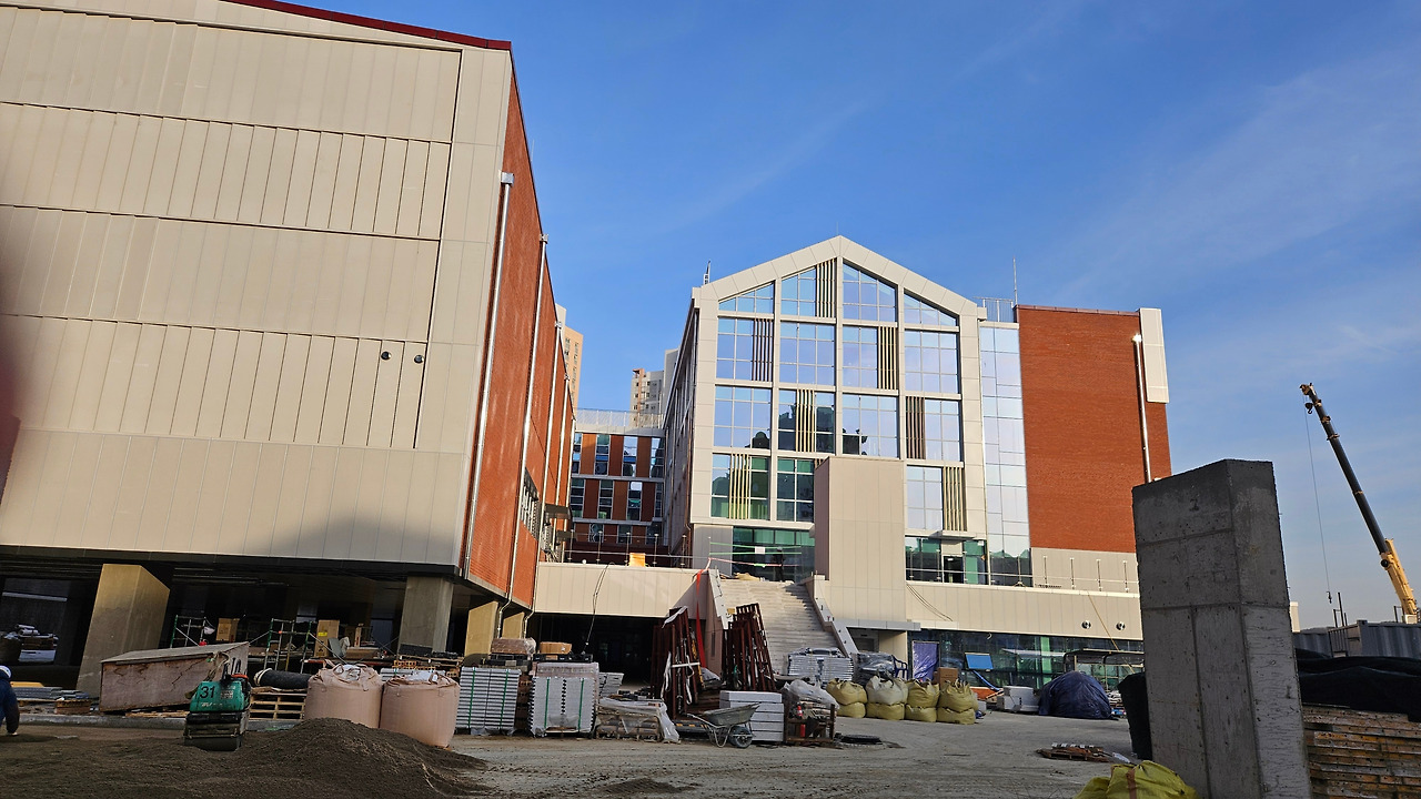 그리고 새 학교로 바로 임장을 갔다. 개교를 앞두고 한창 마무리 공사가 진행 중이었다. 영하 10도의 추위 속에서도 많은 분들이 일하고 계셨다. 땀방울로 만든 그분들의 학교가 3월이면 '우리 학교'가 된다.