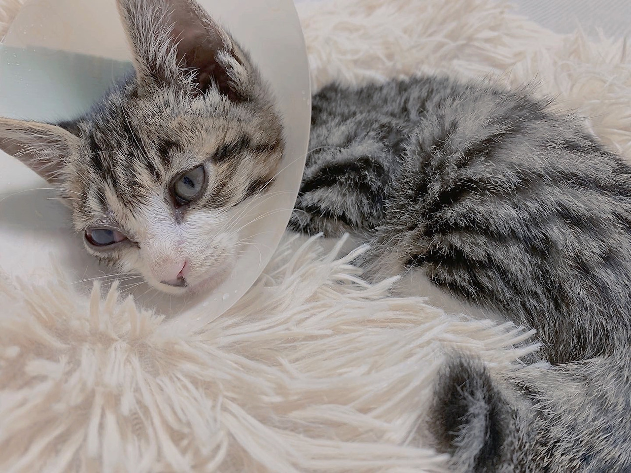 머리는 다시 단순해졌다. 어쩌겠는가. 아직 살아있는 시력을 살려보는데 총력전을 벌여야 하는 걸. 안약은 총 4종류였다. 아침저녁으로 가루약을 먹여야 했다. 그루밍을 막기 위해 넥카라를 씌워야 했다. 하지만 구슬이는 너무 작아 넥카라도 맞는 것이 없었다. 그래서 파일철을 자르고 청테이프를 붙여 넥카라를 직접 만들었다. 넥카라를 씌우면 밥도, 물도 먹지 못한다. 그러니 밥을 먹을 때는 넥카라를 풀어야 한다. 밥을 먹을 때 이외에 물을 먹지 못하니, 밥은 무조건 습식이어야 한다. 지인에게서 얻은 자동급식기는 일단 아웃. 눈에서 항상 나오는 눈곱은 계속해서 식염수로 세척하고, 시간 날 때마다 인공눈물도 놔주어야 한다. 사투였다. 나는 최선을 다해 구슬이를 간호했다. 위에 이야기한 모든 것을 하루도 빼지 않았다. 병원도 2~3일에 한 번씩 계속 다녔고, 올라갔다 내려갔다 하는 안압을 측정해가며 걱정을 놓지 못했다. 그러나 구슬이 눈에서 눈곱이 유독 많이 끼기 시작했다. 열심히도 그 눈곱을 씻어주었다. 그리고 병원으로 갔다.
