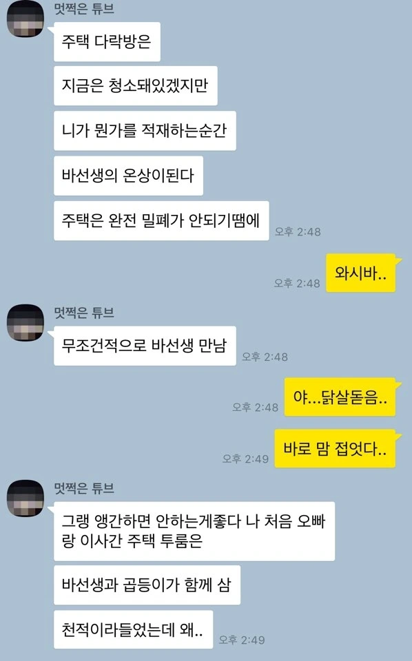 그러나 그 방을 계약하지는 않았다. 나는 평소 씀씀이가 헤픈 편이라 큰돈을 쓸 일이 있을 때는 주위 친구들에게 조언을 얻곤 한다. 2층 방의 간략한 스펙과 사진을 친구들에게 보냈다.