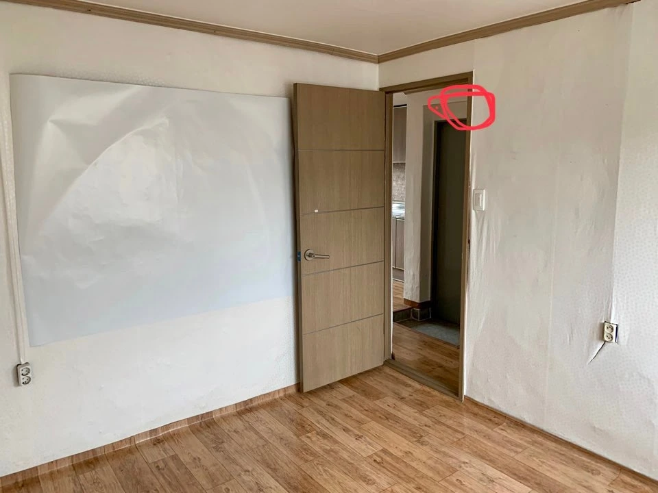 그때 나는 '무조건 이 집을 계약해야겠다'는 생각에 눈에 보이는 것이 없었다. 지금 사진을 다시 보면 허술한 수도관이나 부실한 타일, 어설프게 발라진 벽지 하나하나가 다 보이는데, 그때는 그 집의 모든 것이 유서 깊고 고즈넉한 성북동의 풍경처럼 느껴졌다. '결국 내가 성북동에 살게 되는구나' 뿌듯해하며 현관문을 향하는 순간, 어떤 물체 하나가 눈에 걸렸다. 현관문 바로 위의 벽. 그곳에 새하얀 편지 봉투 하나가 붙어있었다. 오래되어 색이 바랜 벽지에 혼자 새하얗게 붙어있는 그것 하나로 방금까지 사랑스러웠던 공간에 이질감이 느껴질 정도였다.