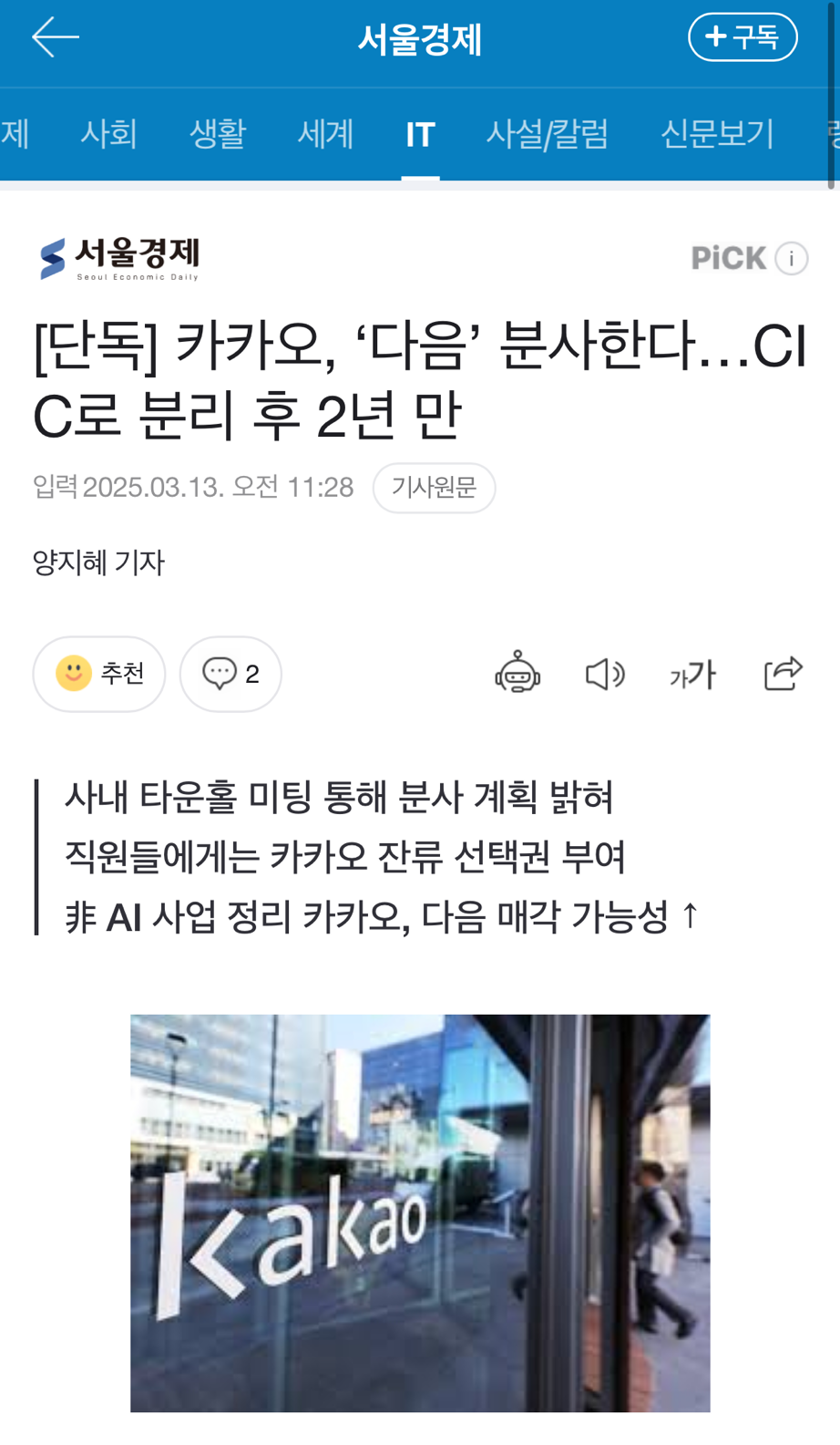 나는 카카오는 카카오대로 다음은 다음대로 잘 쓰고 있던 사람인데 이 둘이 내 허락도 없이 손을 잡더니 사람을 너무 불편하게 만든다. 카카오톡-브런치는 같은 계정을 쓰고 다음은 다른 계정을