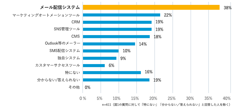 2022년 2월에 기업 마케팅 및 홍보·PR 종사자 701명을 대상으로 “당신이 소속한 기업에서는 정보발신을 위해 어떤 시스템을 도입하고 있습니까?”라는 질문에 1위가 “이메일 전송 시스템”이 기록했습니다. 일본 현지 기업들이 이메일을 가장 많이 활용하는 것은, 실제로 이메일을 확인하는 고객들의 CTR이 높은 것을 의미할 것입니다.