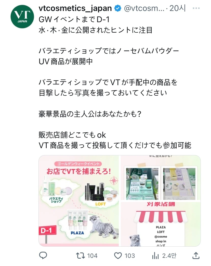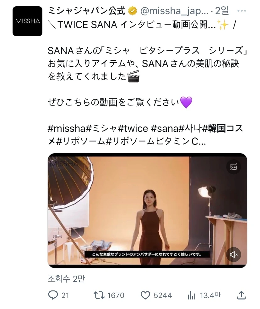 일본에 진출한 한국 화장품 기업들은 이미 트위터에서 다양한 정보들을 제공하고 있습니다. 신제품 및 이벤트까지 다양한 정보를 제공하면서 브랜드의 신규고객 유입과 팬층 형성을 하고 있습니다.