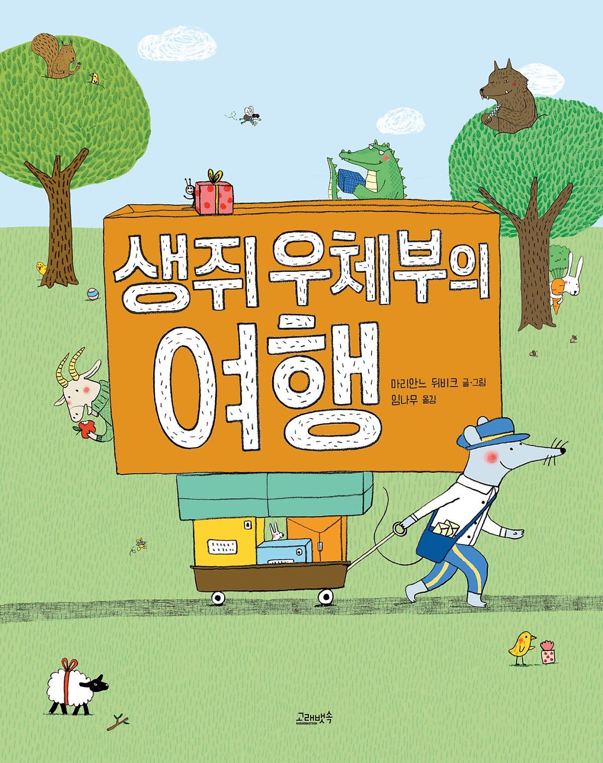 작은 짐수레에 우편물을 가득 실은 생쥐 우체부가 길을 나서요.