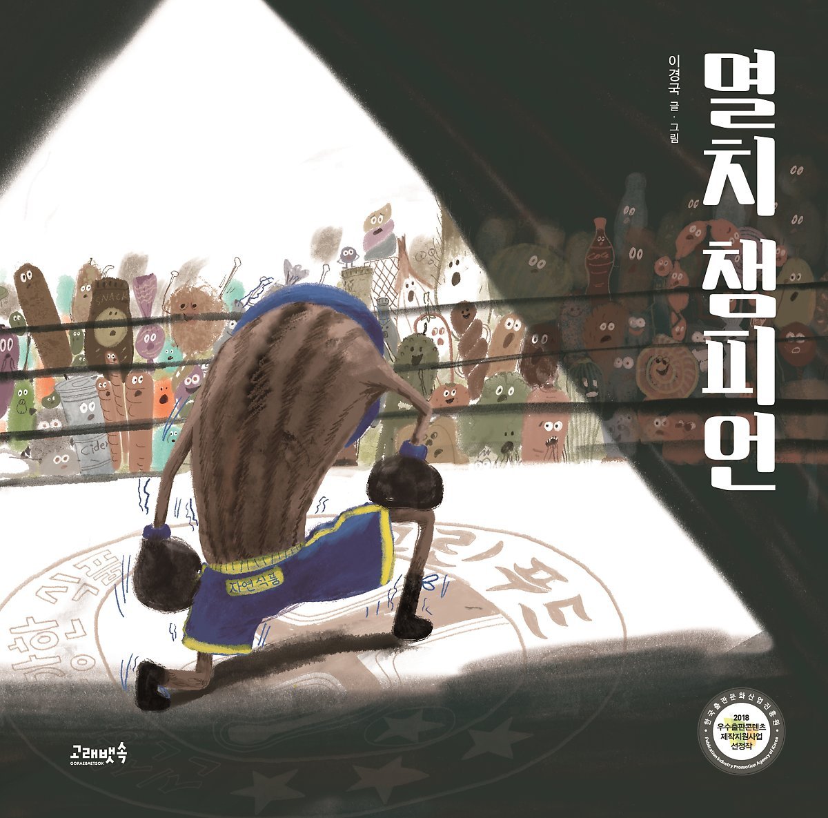 스몰치 선수와 빅크 선수가 링 위에 오르자, 뜨거운 함성 소리와 함께 ‘건강한 배 결승전’ 경기가 시작된다. 당근 아나운서와 햄 해설 위원의 감칠맛 나는 중계가 경기의 재미를 더한다. 작고 가냘픈 스몰치 선수와 엄청난 몸집의 빅크 선수, 역시나 초반부터 빅크 선수가 강력한 펀치를 날리며 쉴 틈 없이 스몰치 선수를 몰아붙인다. 두 번이나 녹다운된 스몰치 선수! 카운트가 끝나기 전에 일어나긴 했지만, 빅크 선수는 챔피언 타이틀을 얻을 수 있을까?