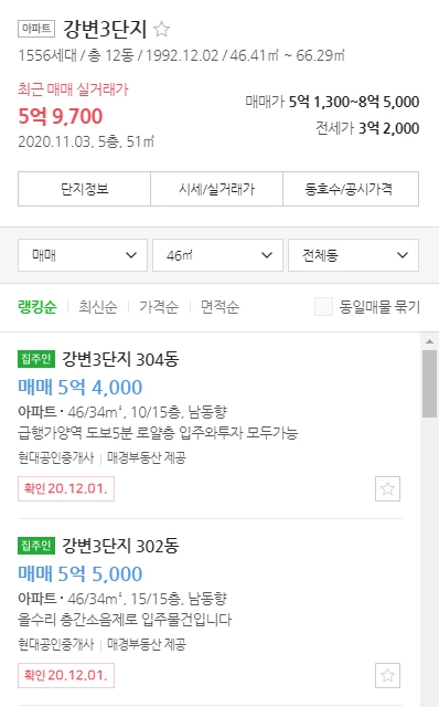그 아파트는 가양동 강변3단지이다. 2016년 8월에 2억 천에 나왔던 소형 아파트,