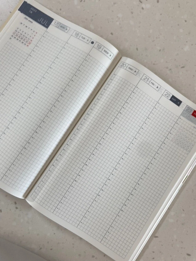 같은 브랜드의 2023 다이어리는 버티컬 구성은 아니지만 이쁘고 깔끔하다.