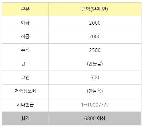 나는 나의 현금 현황을 아래의 표로 정리해보았다.