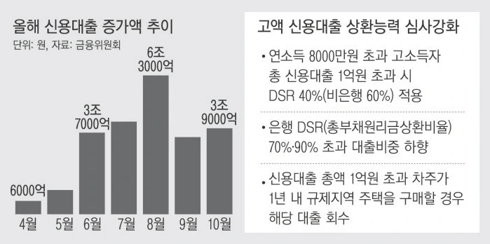 1. 연 8천 이상 고소득자는 신용대출 1억 초과 시 DSR 40% 적용(DSR이 무엇인지는 나중에 알아보자)