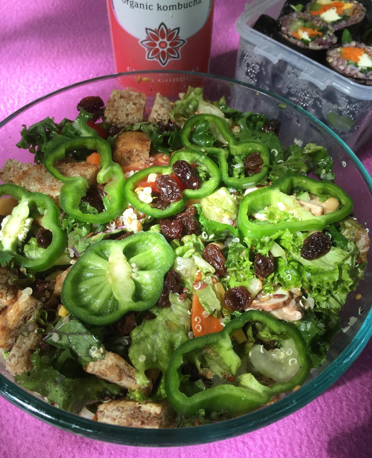 케일을 비롯한 온갖 채소와 씨앗, 남은 음식, 샐러드용 올리브유