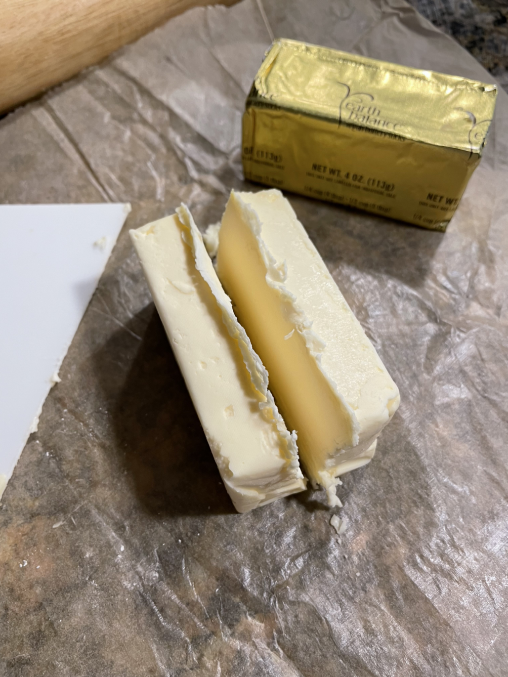 평소에 버터를 쓸 일은 거의 없다. 남편이 일주일에 두어 번 토스트에 조금 발라 먹는 정도다. 그렇게만 먹으면 한 통으로 팔구 개월쯤 버틸 수 있을지도 모른다. 그랬다면 구태여 비건 버터를 논할 필요는 없다. 하지만 우리는 크루아상을 좋아한다. 크루아상을 만들려면 버터가 필요하다.