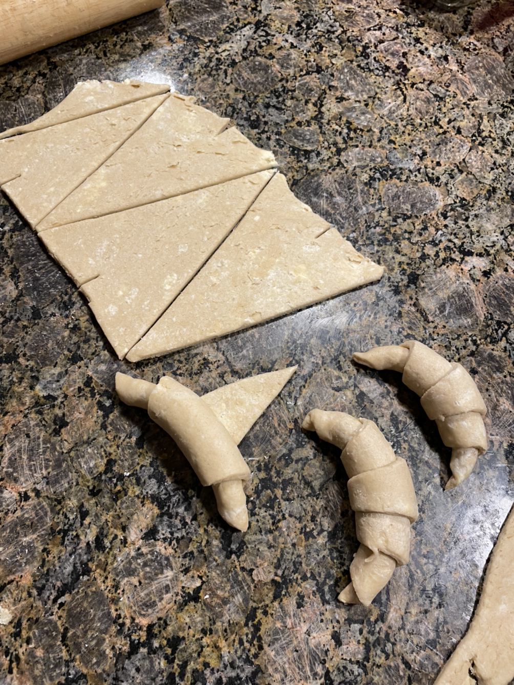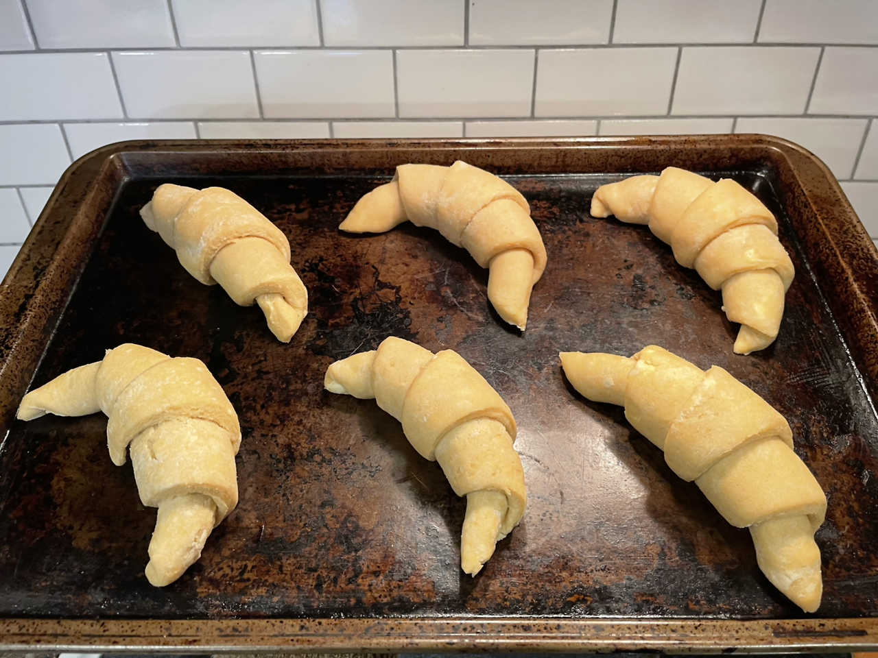 정말 쉬울까? 나는 그렇다고 본다. 반죽은 재료가 잘 섞이는 정도면 된다. 크루아상이 어렵게 여겨지는 건 아마도 여러 번 접어 펴기와 성형 때문일 테다. 그런데 반죽과 성형은 내가 제과제빵에서 제일 좋아하는 단계다. 효모 덕에 살짝 부푼 밀가루 반죽을 만지는 재미가 좋다. 그래서 초승달 모양 페이스트리를 만드는 건 특별히 더 즐겁다.