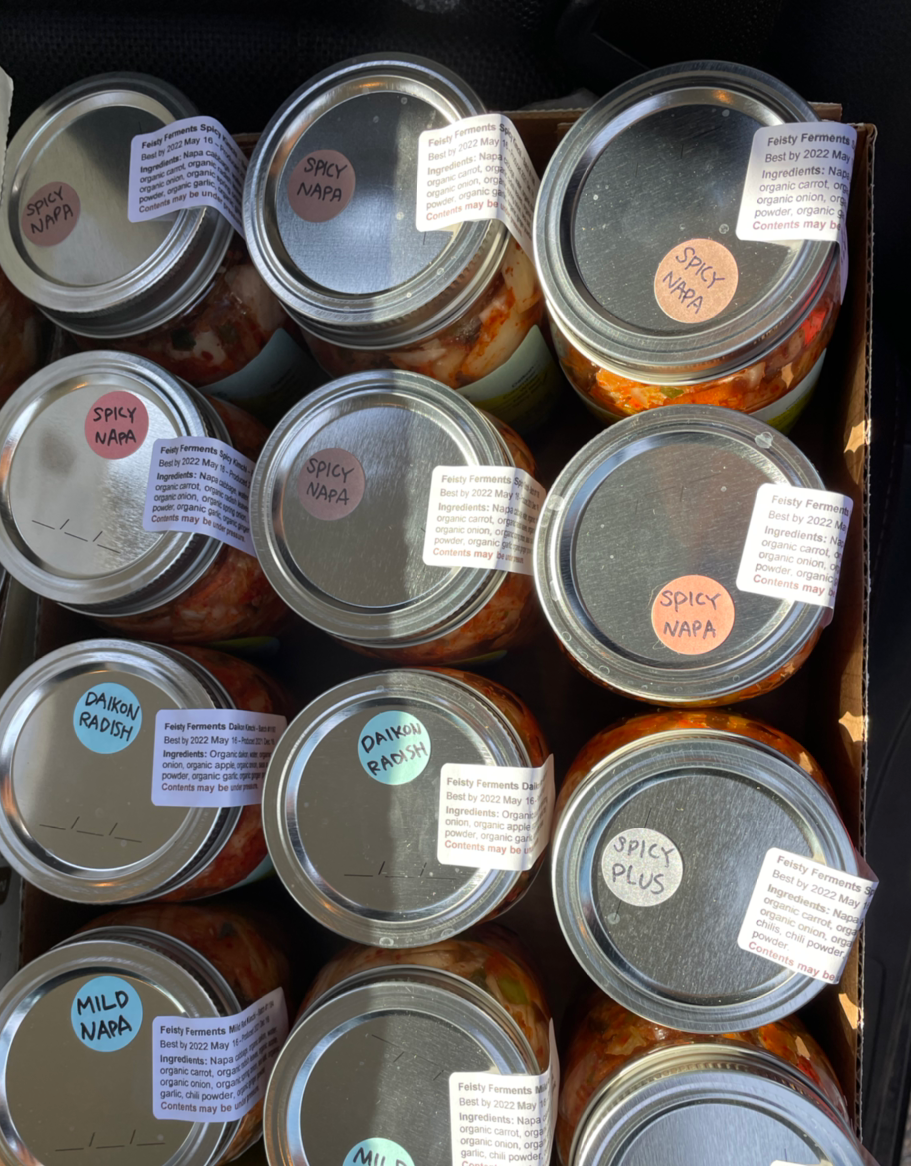 재사용을 못 하니 집에 병이 쌓인다. 손님들이 되돌려 주기도 하고, 팔지 못하고 우리가 먹는 김치 양도 꽤 되어 병은 언제나 넘친다. 주변에서 잼 만들 병이 필요하다고 하면 주고, 가끔 되팔기도 한다. 벼룩시장에 놓으면 금세 사라지니 그나마 다행이다.