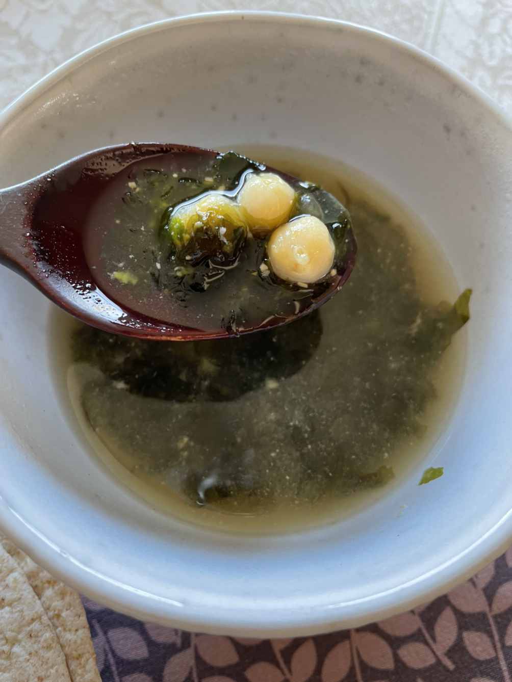 점심에 동네 한 바퀴 걷고 온 뒤, 찬 음식만 먹기 싫어서 간단한 국을 끓였다. 남편이 만든 미소 된장을 넉넉히 풀어 간을 맞췄다. 맛있어서 저녁에 또 만들었다.