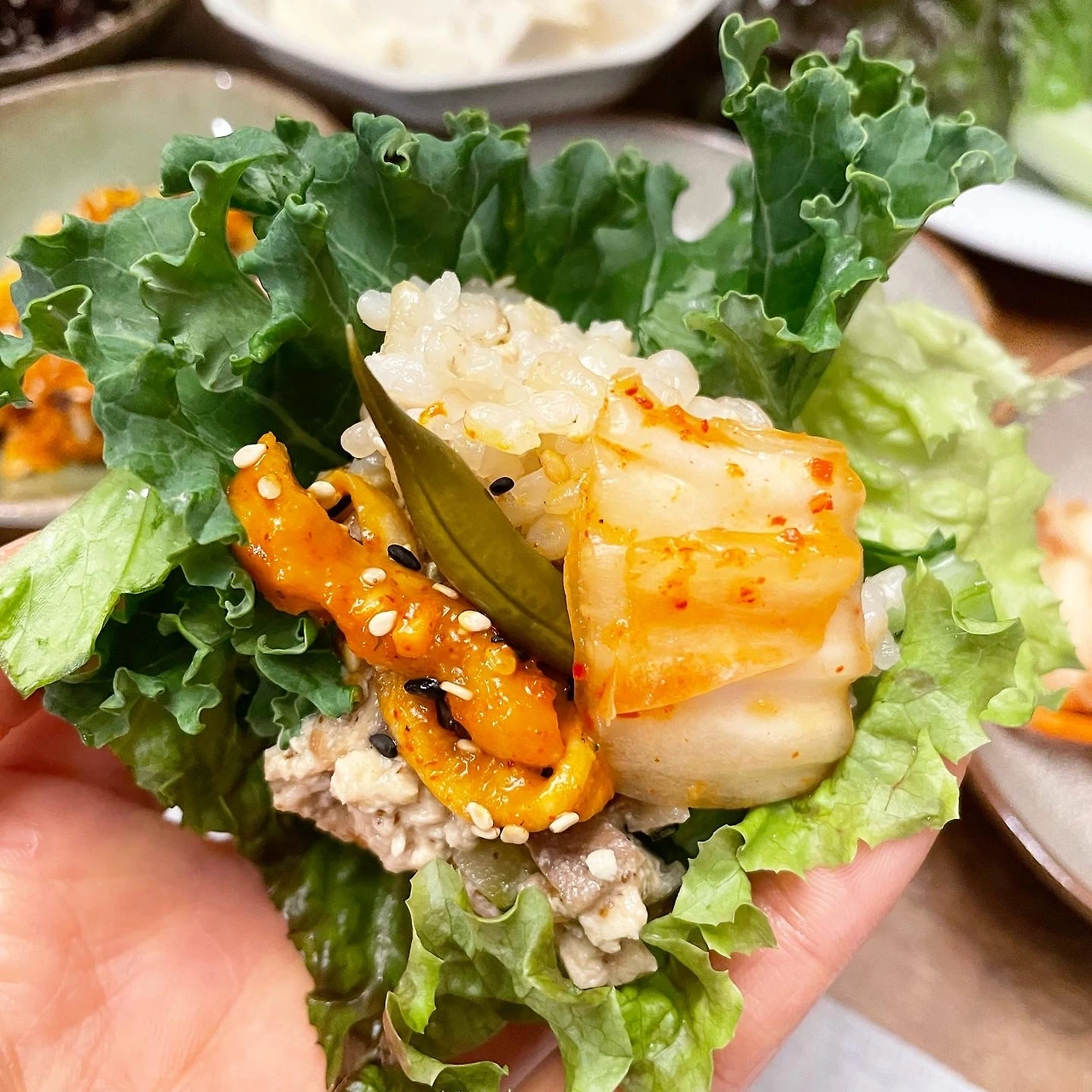 푸른 잎채소에 갓 지은 밥을 올리고 구수한 강된장을, 상큼한 김치를, 또는 따뜻한 두부와 장아찌를 올려 먹는다. 그렇게 몇 번 반복하다가 눈이 마주치면 우리는 크게 고개를 끄덕인다.