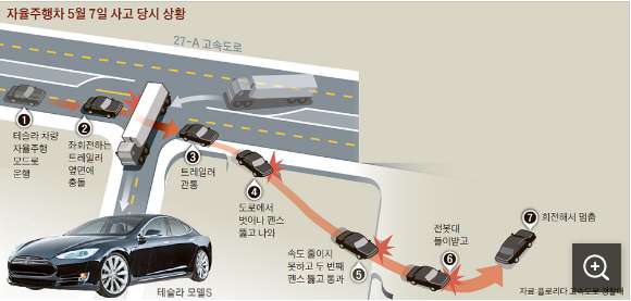 미국에서 자율주행 모드로 달리던 테슬라 스포츠 전기차인 모델 S가 대형 트레일러와 충동해 운전자가 사망하는 사고가 발했다. 자율주행자에서 발생한 첫 사망 사고다.
