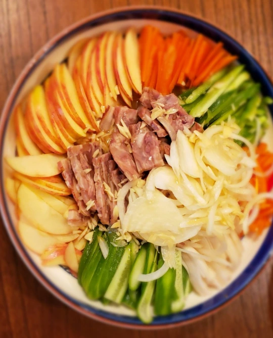 고기를 채 썰어 만든 까닭에 단면이 예뻤다.