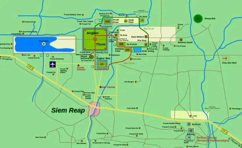 시엠립은 돈레삽과 가깝고 시엠립강을 끼고 있다. 그리고 크메르족이 성지로 여기는 프놈쿨렌산이 있다. 앙코르 시대를 연 자야바르만 2세는 수도를 시엠립에 세우고 시엠립의 앙코르 제국은 그 후 6백여 년간 이어진다(이전 첸라 시대의 수도는 껌뽕톰주 썸보쁘레이쿡. 시엠립에서 150km 떨어져 있다). 힌두교는 앙코르 시대에도 계속된다. 대부분의 앙코르 사원에는 힌두교의 3대 신인 쉬바, 브라흐마, 비쉬누를 비롯 많은 신이 등장한다. 그러다 대승불교를 믿었던 수리야바르만 1세(1002~1050)가 즉위하며 불교를 받아들인다. 불교가 크게 융성한 것은 자야바르만 7세가 즉위하면서다. 철저한 불교신자였던 그는 앙코르톰 중앙에 불교 사원인 바이욘 사원을 세우고 그 안에 54개의 탑과 200개가 넘는 관음보살상을 만든다. 자신을 백성들에게 자비를 베푸는 부처라고 생각하며 많은 불교 사원을 짓고 입구 사면에는 어김없이 관음보살상을 세웠다.