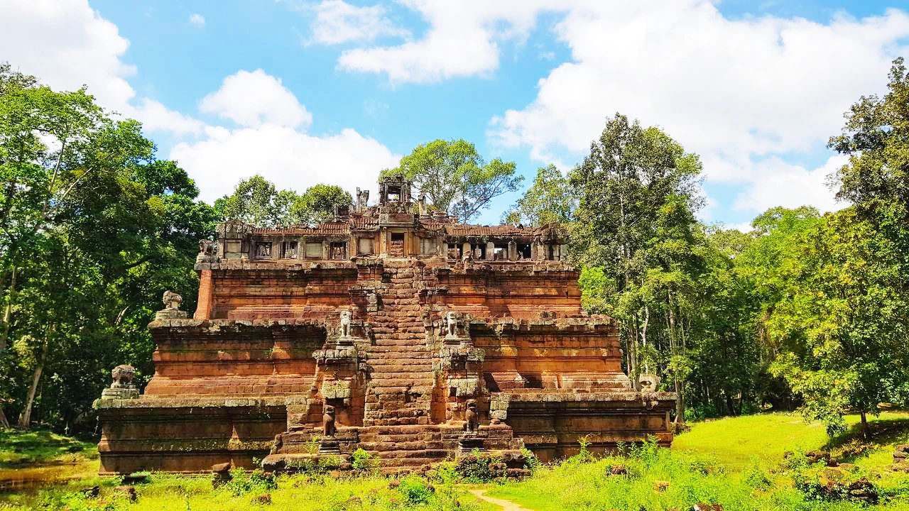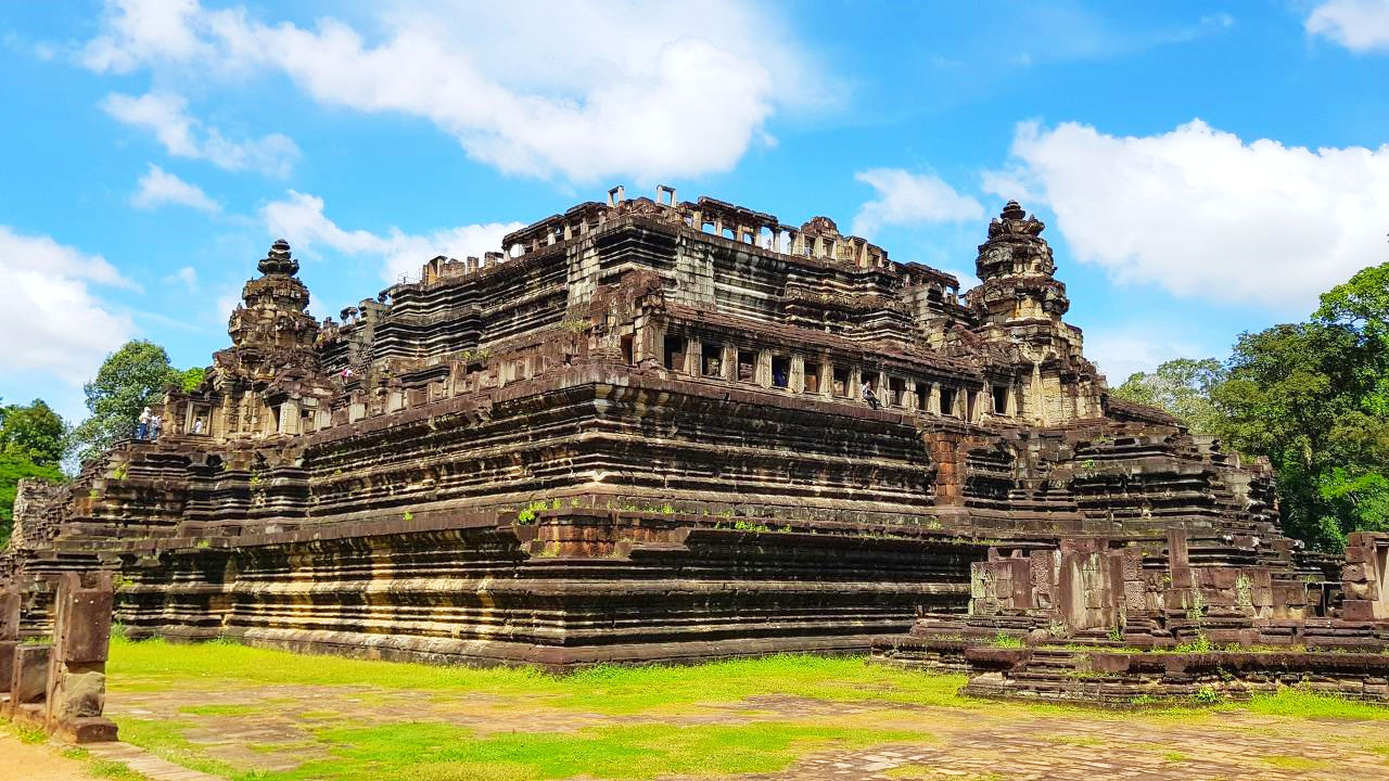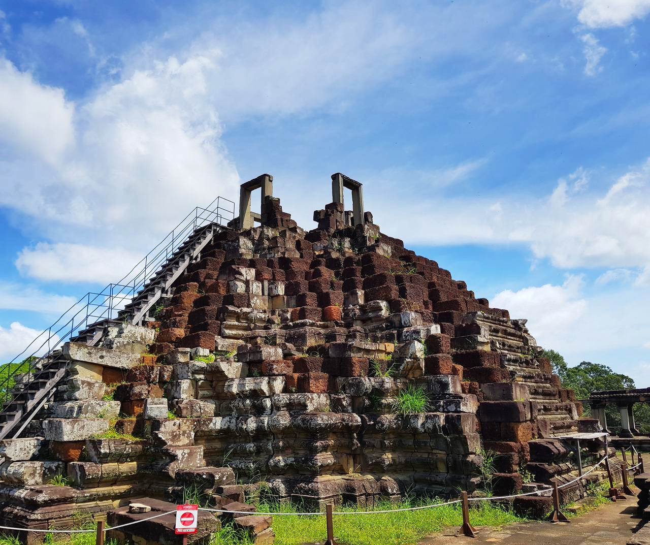 바이욘의 미소를 상상하며 걷는데 눈앞에 육중한 건축물이 나타난다. 바푸온 사원. 앙코르톰이 건설되기 전인 우다야디티야바르만 2세(1050~1066)때 지은 힌두 사원이다. 높이가 43m로 무척 높다. 첫인상이 미소와는 연관 없는 우람한 남성이 연상되지만 자세히 보니 층층의 피라미드 계단이 아름다운 선율을 만들고 있다.