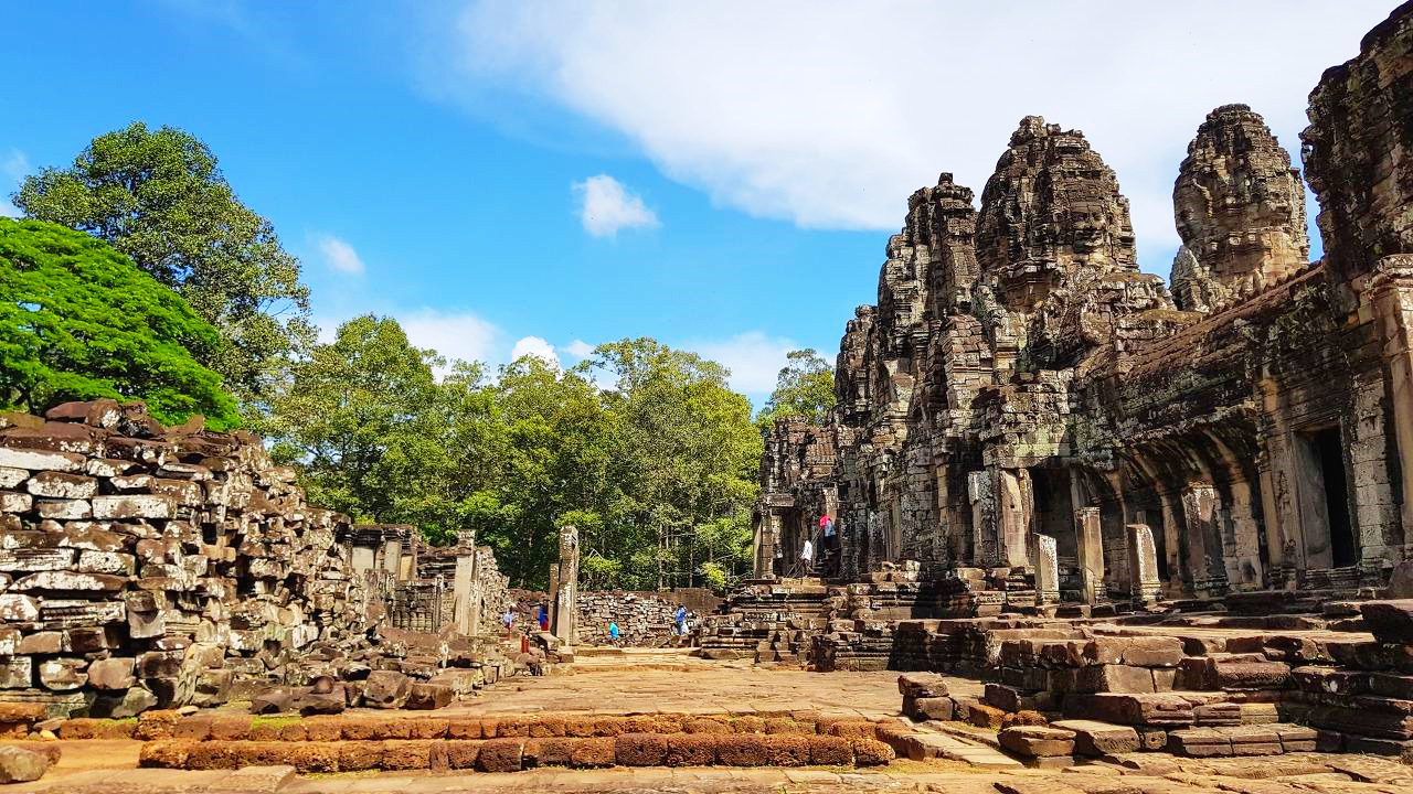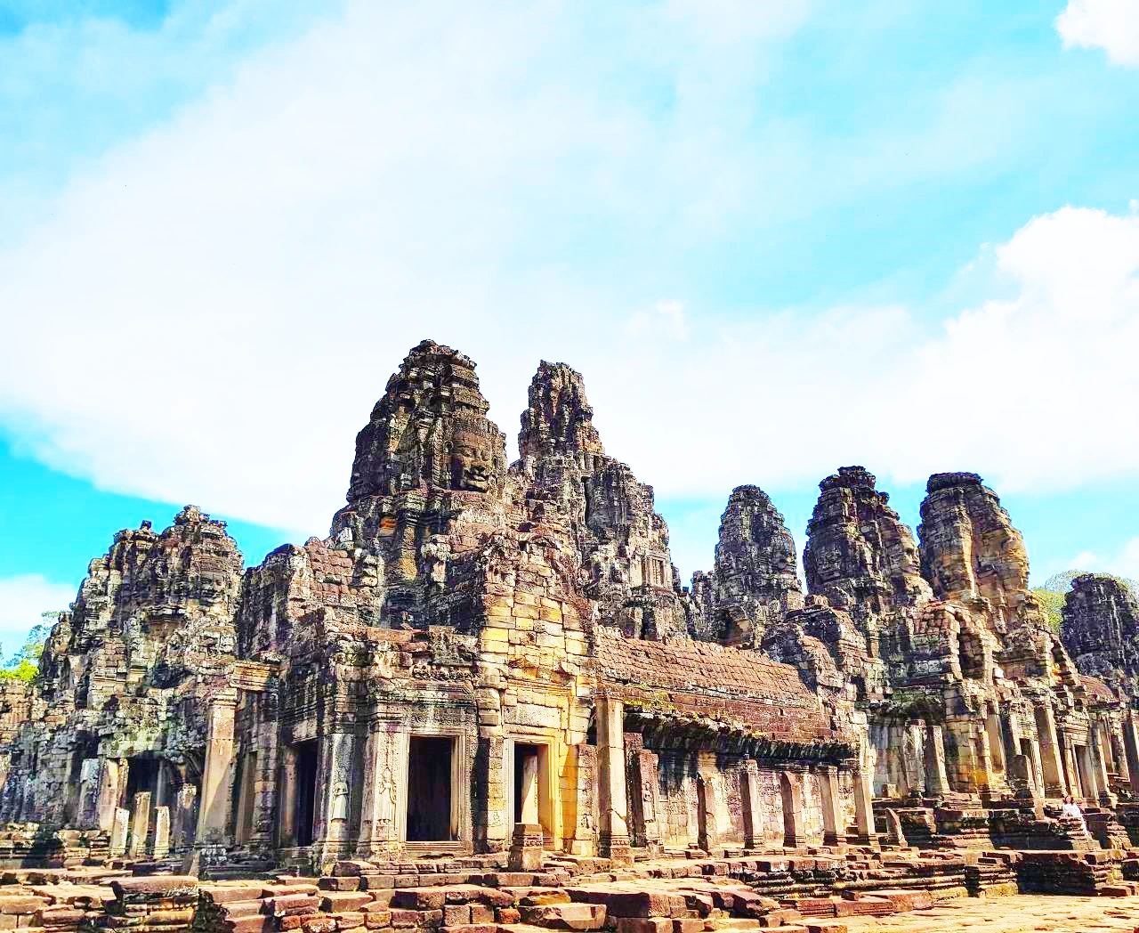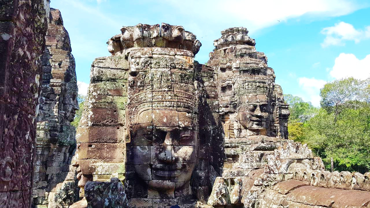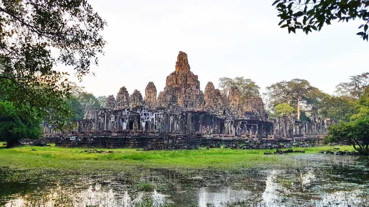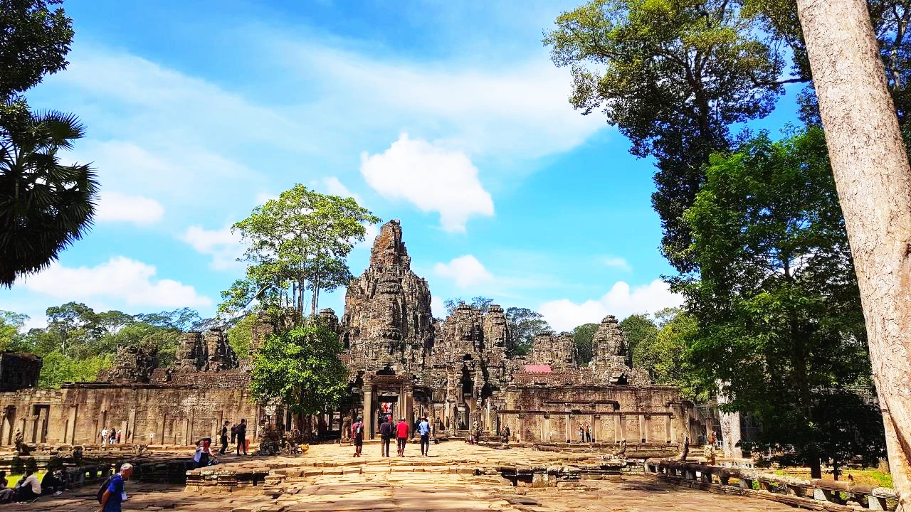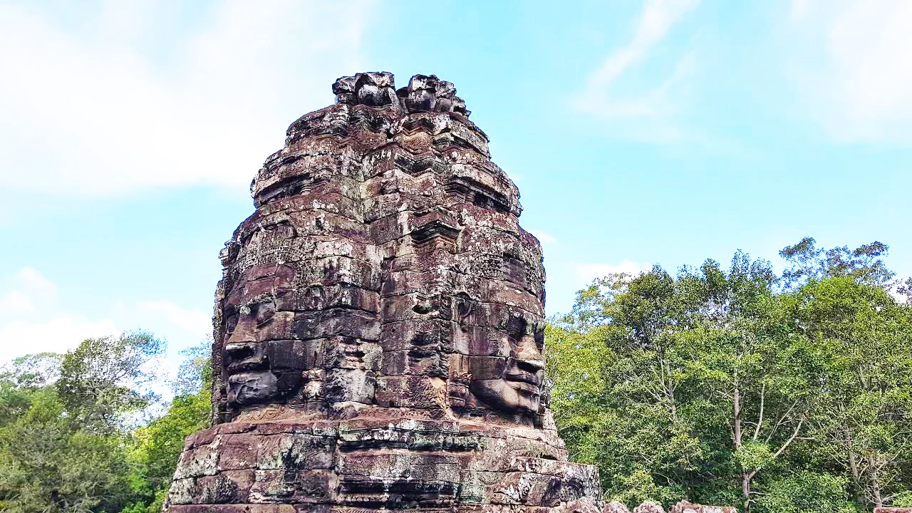 바이욘 사원은 20만 개가 넘는 돌로 만들어졌으며 54개의 탑과 200개가 넘는 부처상이 있다. 캄보디아 사람들은 이 부처상을 ‘바이욘의 미소’라고 부른다. 사원 앞 한쪽에 남아있는 연못에 물이 고여 바이욘 사원이 거울처럼 비추고 근처에서는 원숭이들이 뛰어 논다.