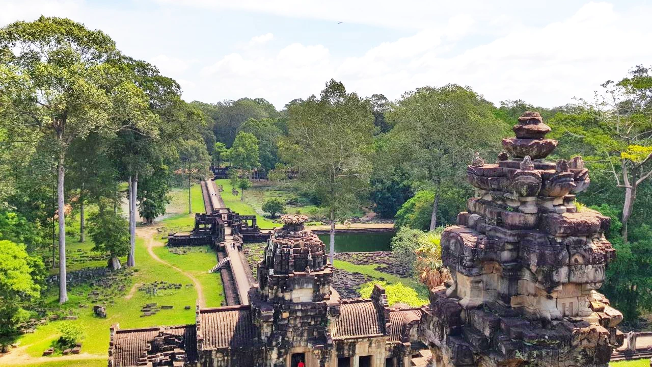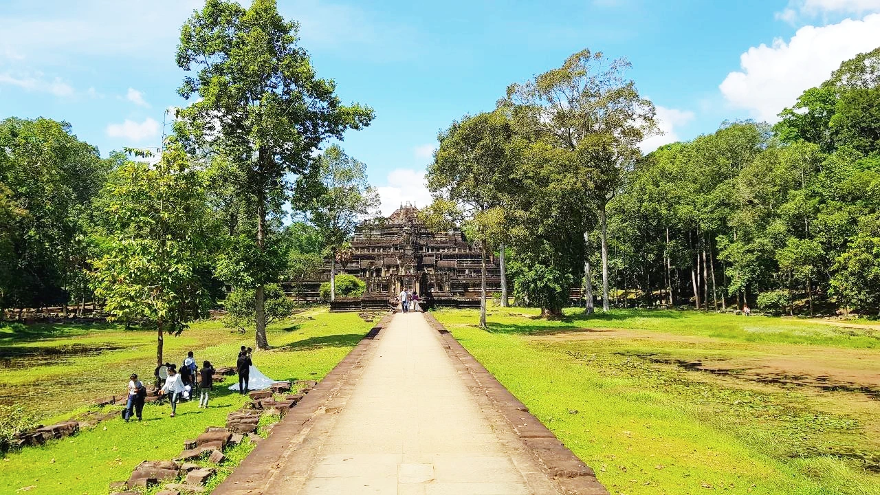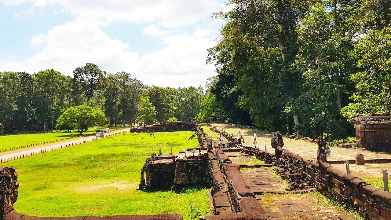 앙코르톰에서 사람이 가장 적은 곳이 왕궁터다. 왕궁터에는 남아있는 것이 거의 없기 때문이다. 그래서 이곳은 가이드도 그냥 지나치는 경우가 많다. 하지만 보면서 가장 많이 상상하는 곳이 이곳이기도 하다. 보이는 게 없으니 자기 맘껏 상상하며 보면된다. 원나라 사신 주달관의 기록에 따르면 왕궁은 금색으로 장식되어 화려하고 웅장했다고 쓰여있다. 왕궁은 바이욘 사원에 가까이에 있어 앙코르톰 중앙이라고 할 수 있다. 왕궁터는 직사각형의 담장에 싸여있다. 담장 안에는 왕궁이 있었고 왕궁의 사원이라고 알려진 피미엔나까스 사원, 왕족과 궁녀들이 목욕했다는 연못 두 개, 그리고 부속 건물들이 있었다. 지금 왕궁터에는 피미엔나까스 사원과 연못 두 개만 남아있다. 누군가는 재미없는 이곳이 나는 무척 흥미롭다. 사람이 거의 없어 호젓하게 산보하듯이 걸을 수 있어 좋다.