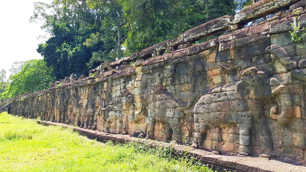 코끼리테라스는 출정하는 병사들이나 전쟁에서 승리한 병사들을 맞이하고, 국가의 중요한 행사를 진행했던 곳이다 이곳에 서면 시야가 탁 트이고 커다란 광장이 눈앞에 펼쳐진다. 누가 봐도 이곳에 많은 사람들이 모여서 뭔가를 했을 것 같이 넓다. 코끼리테라스는 300m 길이에 폭이 14m다. 끝이 안 보인다. 내 눈에 보이는 것은 돈레삽 해전에 출전하는 수십만 명의 군사들이 자야바르만 7세에게 맹세하는 모습이다.