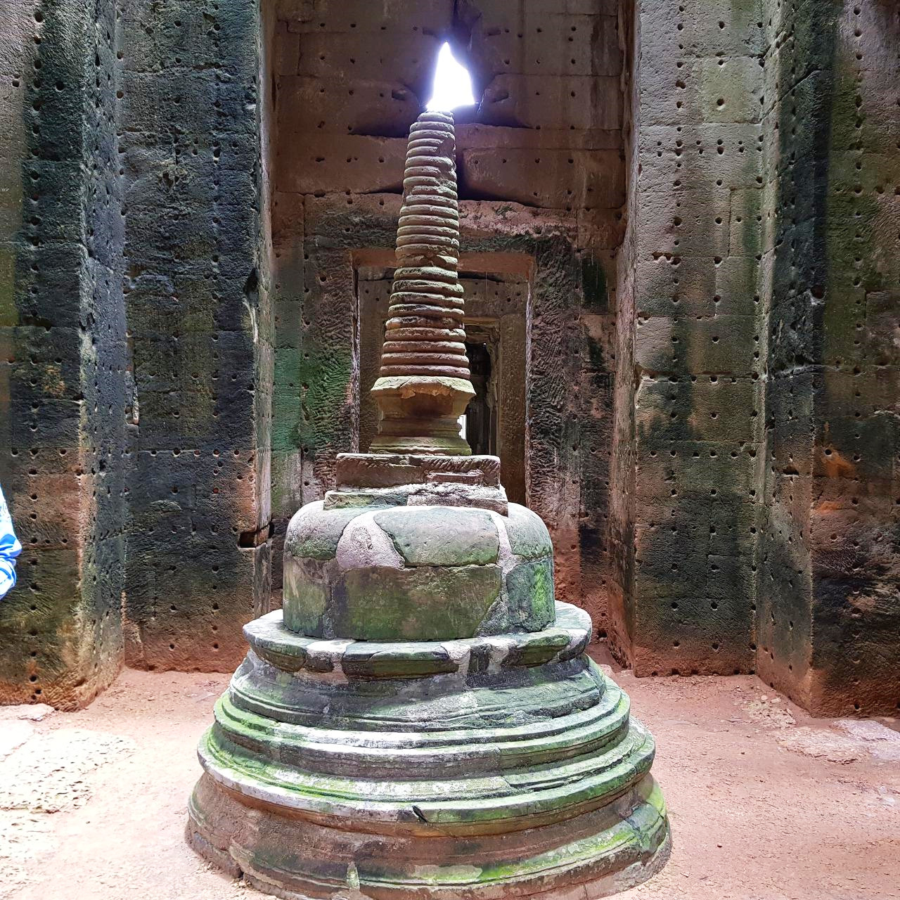 중앙성소에 가까이 가며 성스러운 칼에 대한 이야기를 기대했다. 중앙성소에는 원래 자야바르만 7세 아버지의 석조물이 있었다고 한다. 지금의 원형탑은 16c 교체된 것이고. 이곳에도 칼에 대한 이야기는 없다. 원형탑 안에는 자야바르만 7세 아버지의 사리가 있다고 하는데 그 말도 믿기 어렵다. 하지만 원형탑 상단 하늘로 향하고 있는 부분이 정확히 사원의 중앙을 가리키며 이는 자야바르만 7세의 아버지를 향한 맘이라는 설명은 이해가 된다.