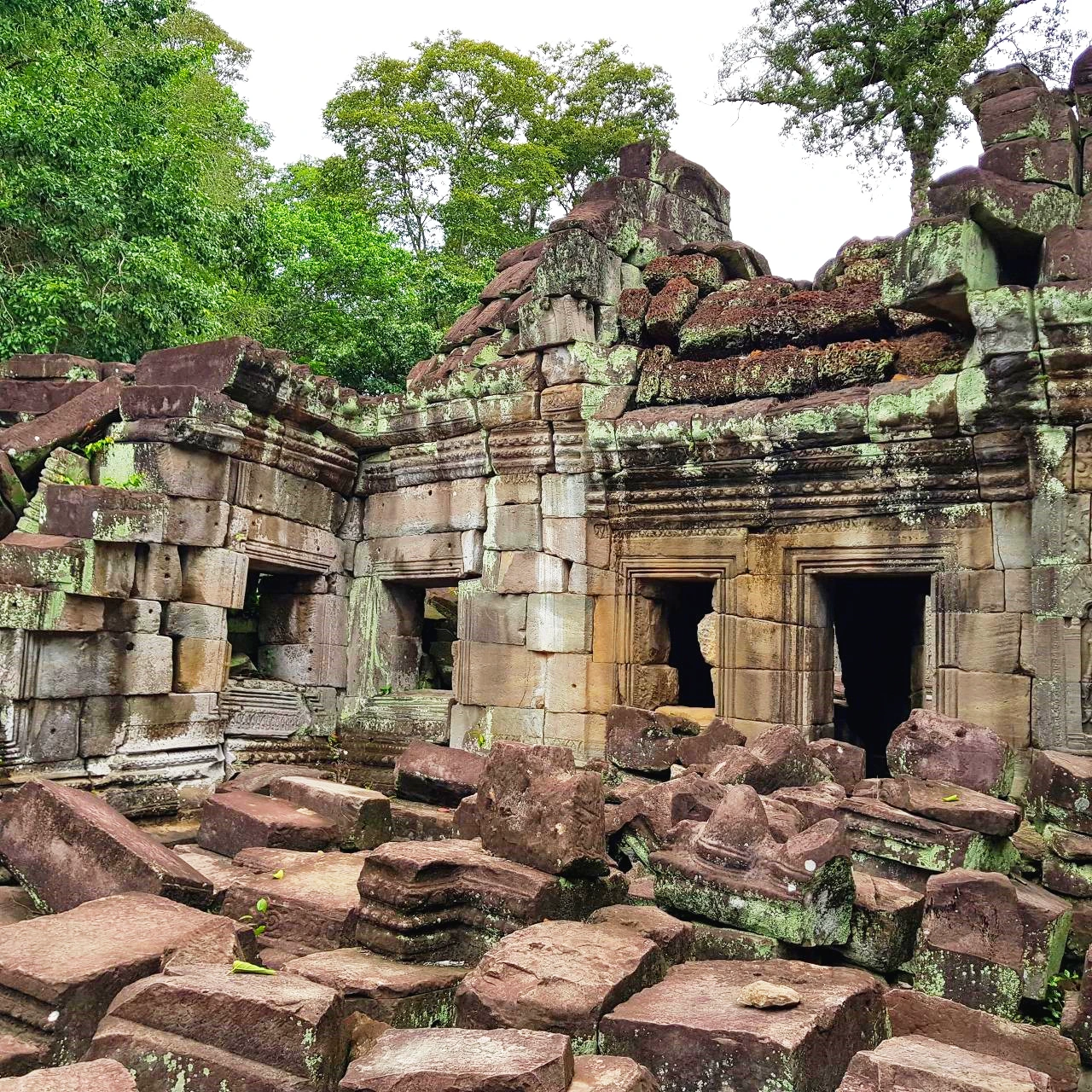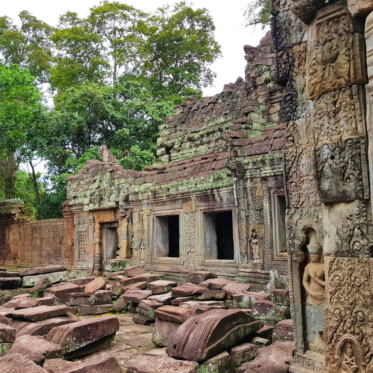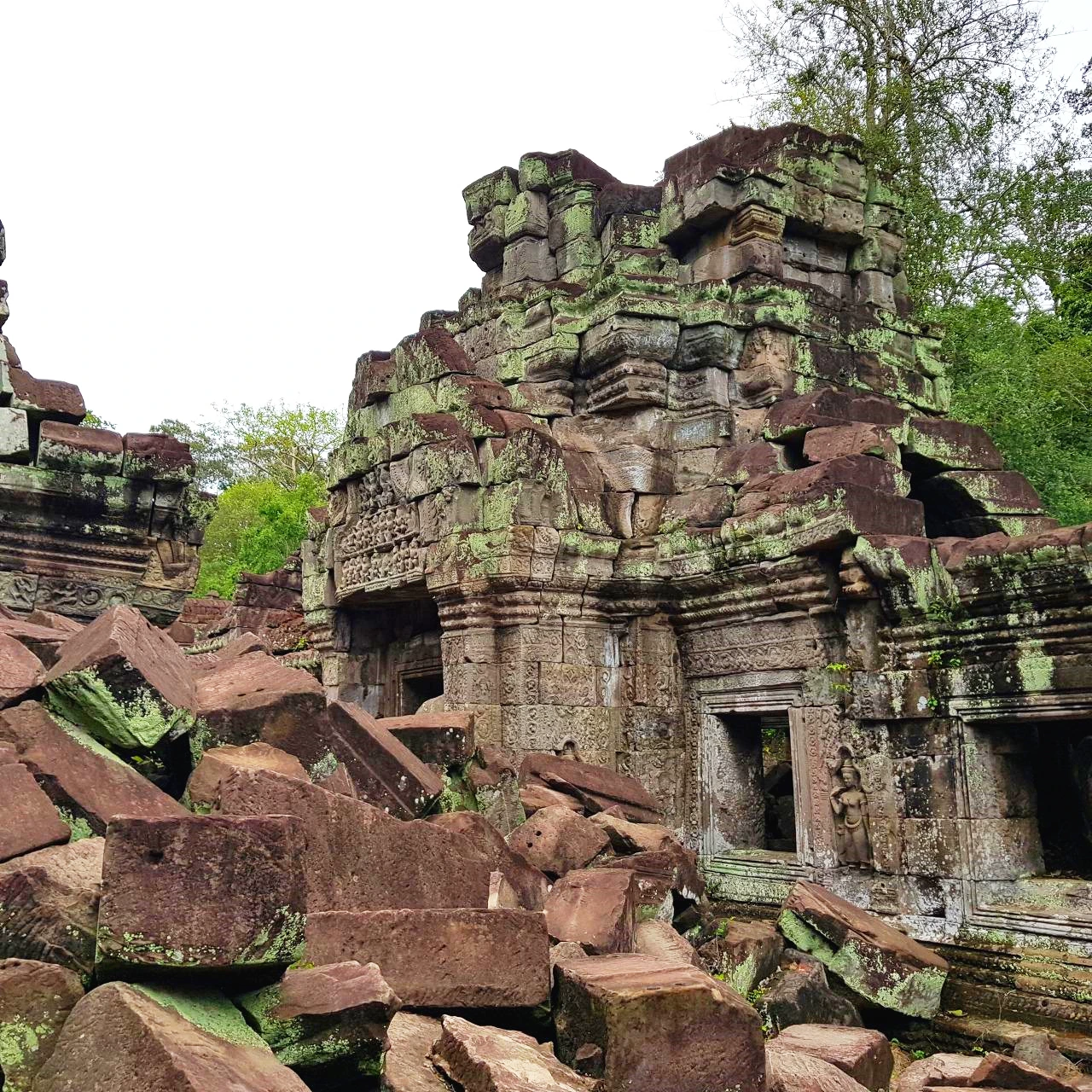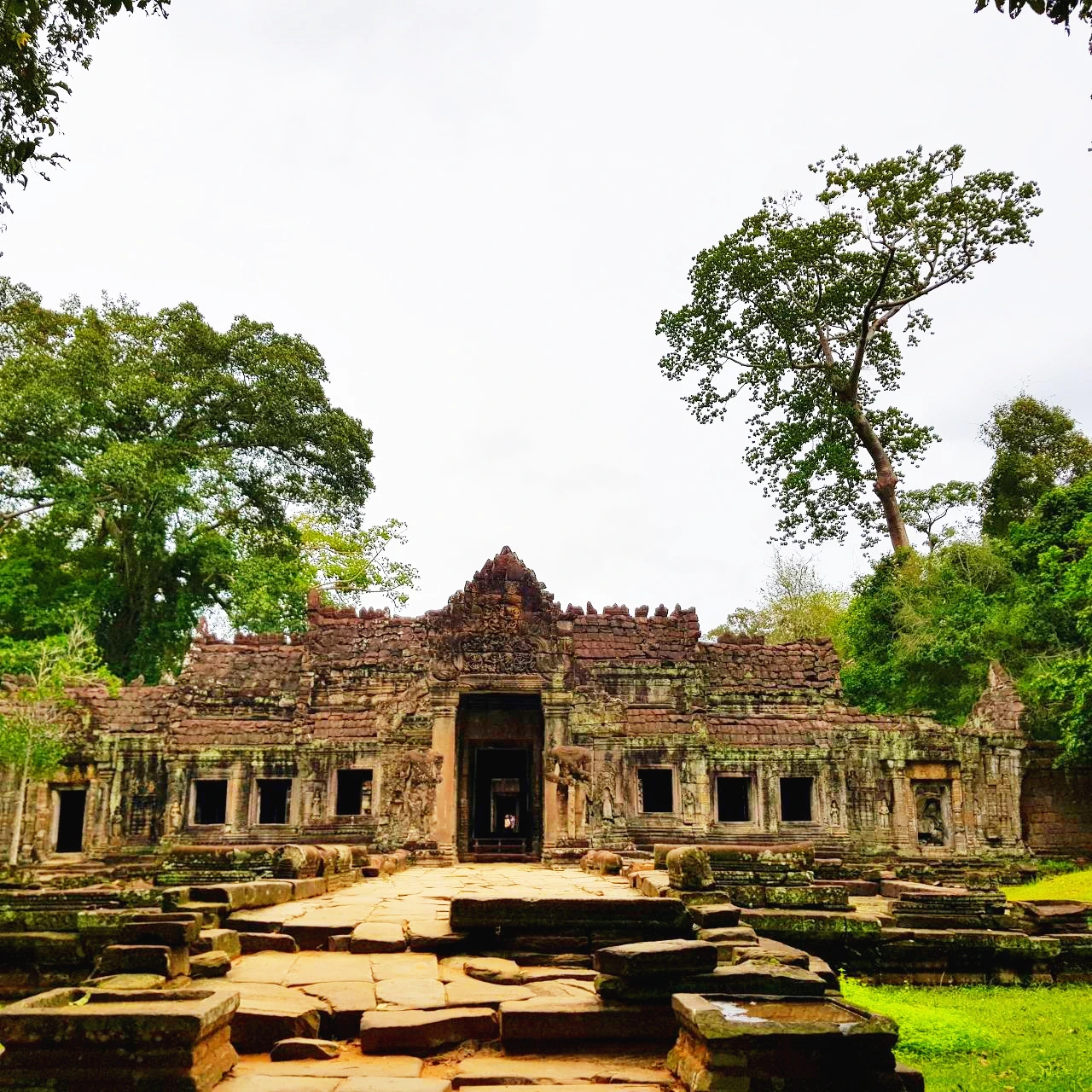 쁘레아칸은 중앙성소 원형탑이 모든 걸 말해주고 있다. 아버지를 위한 마음이자 강한 앙코르 제국을 건설하고 싶었던 뜻이 담긴 곳이다. 그래서 쁘레아칸 사원은 전체적으로 강한 느낌을 준다. 건물의 구조가 단순하지만 배치된 선은 굵다. 자야바르만 7세 사후 쁘레아칸 사원은 힌두 사원으로 바뀐다. 그러면서 조각이 파괴되거나 변형된다. 자세히 보면 불교 조각과 힌두교 조각이 섞여 있는 것을 볼 수 있다. 나의 눈에는 거의 비슷해 보이지만 쁘레아칸 사원이 갖고 있는 슬픈 역사다.