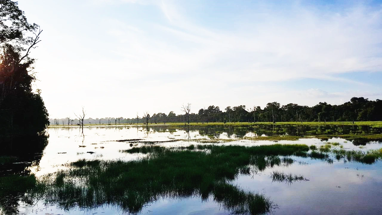 동쪽으로 나오니 끝도 없이 펼쳐진 호수(실제는 인공 저수지)가 펼쳐진다. 자야타타카 호수다. 자야바르만 7세는 사원 앞에 거대한 인공 저수지를 축조하여 쁘레아칸이 신성한 곳임을 증명하고자 했다. 옛날이나 지금이나 물은 생명의 근원이다