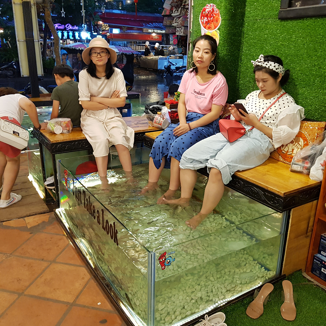 이곳은 저녁부터 차량통행이 금지되고 외국인들이 모여든다. 펍과 레스토랑, 바에서는 흥겨운 음악이 흘러나오고 황홀한 네온이 거리를 밝힌다. 크메르 음식은 물론 퓨전 음식, 맥주와 음료를 맛볼 수 있다. 길거리 먹거리도 풍부하여 구경하며 먹는 재미도 좋다. 대체로 가격은 비싼 편이다. 나이트마켓과 올드마켓이 바로 붙어 있어쇼핑하기도 좋다.