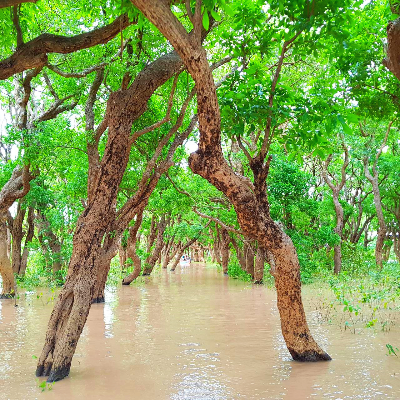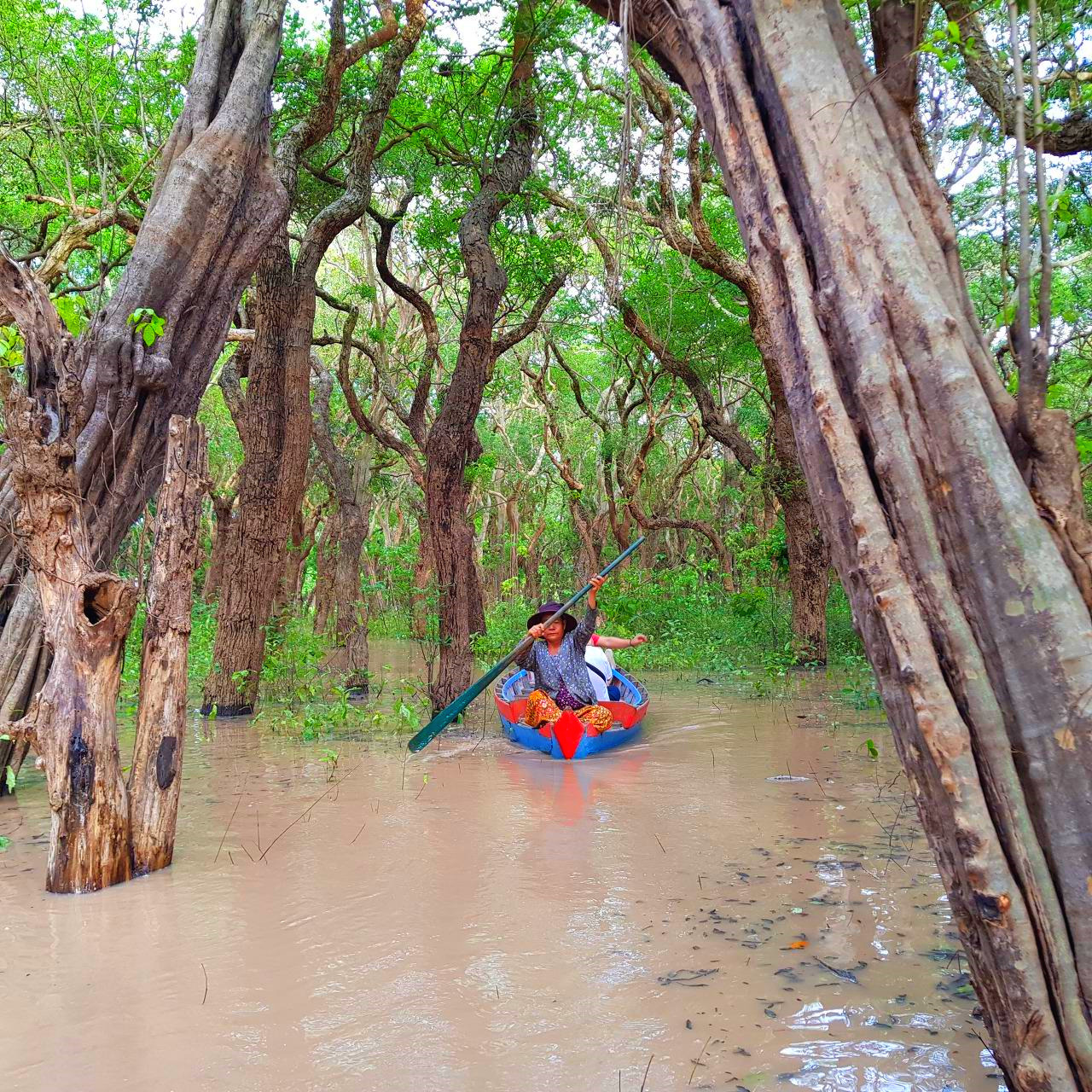 맹그로브 숲을 보기 위해 쪽배로 옮겨 탔다. 맹그로브 숲은 물고기의 산란장소, 은신처이며 먹이를 제공을 하는 유용한 숲이다. 돈레삽의 물고기는 맹그로브 숲이 고향이다. 맹그로브 나무뿌리는 물밑 10m까지 내려간다. 나무는 기이한 모양으로 감탄을 자아낸다. 똑같은 모양의 나무가 하나도 없다. 자유자재로 뻗어 오른 서로 다른 곡선이 하늘을 향해 춤을 춘다. 맹그로브 숲에는 많은 압사라 여신이 매일 물 위에서 춤을 추고 있다.