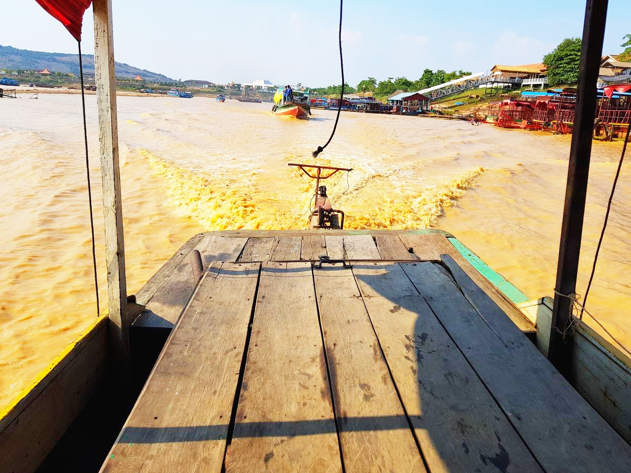 거창한 대답을 기대했던 나는 어린아이의 꿈이라고는 생각지도 못했던 답을 듣고 잠깐 멍했다. 하지만 대부분의 캄보디아 사람들 꿈은 실제로 이렇다. 행복한 가정. 사실 이보다 더 큰 꿈은 없다. 배가 이십 여분 달려 껌뽕플럭 마을에 도착했다. 강에 박힌 집의 기둥이 숲을 이루고 있다.