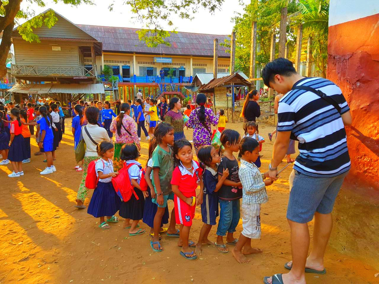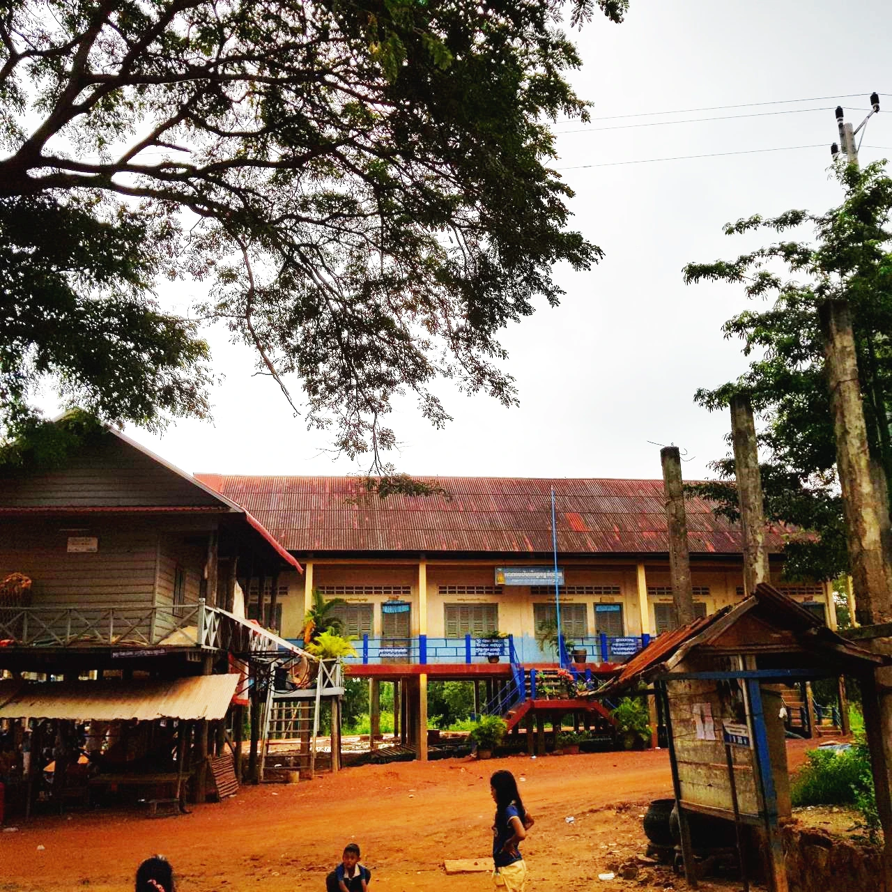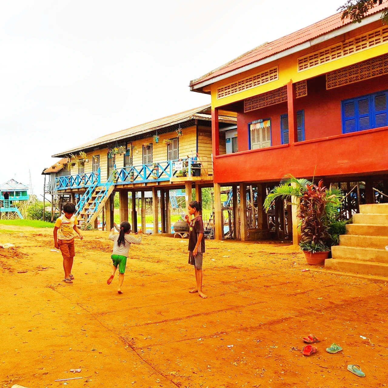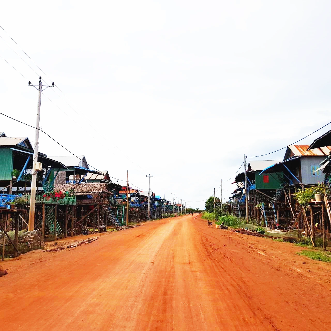 이 길을 따라 마을이 양쪽으로 길게 이어져 있다. 좌측의 집이 강과 붙어 있는 집이다. 우측의 집도 같은 높이로 지어졌다. 쏘포안이 전봇대 위의 흙탕물 흔적을 가리키며 작년 우기에는 이만큼 물이 찼다고 말한다. 집들이 족히 2~3km는 길게 이어졌다. 700여 가구가 산다고 하니 마을 규모도 엄청 크다. 최근 캄보디아 내무부 통계자료에 의하면 한 가구당 자녀가 평균 5명이라니까 여기 사는 사람이 얼마나 많은지 가늠이 된다. 초등학교가 2개, 중학교가 1개가 있다. 365일 물 위에서 사는 수상마을과는 달리 이곳은 전기가 들어온다. 물에 잠기지 않는 10개월은 캄보디아 여느 마을과 같다.